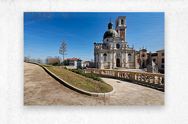 People visit the Church of St. Mary of Mount Berico in Vicenza Veneto Italy enjoying the bright weather and the surrounding views.