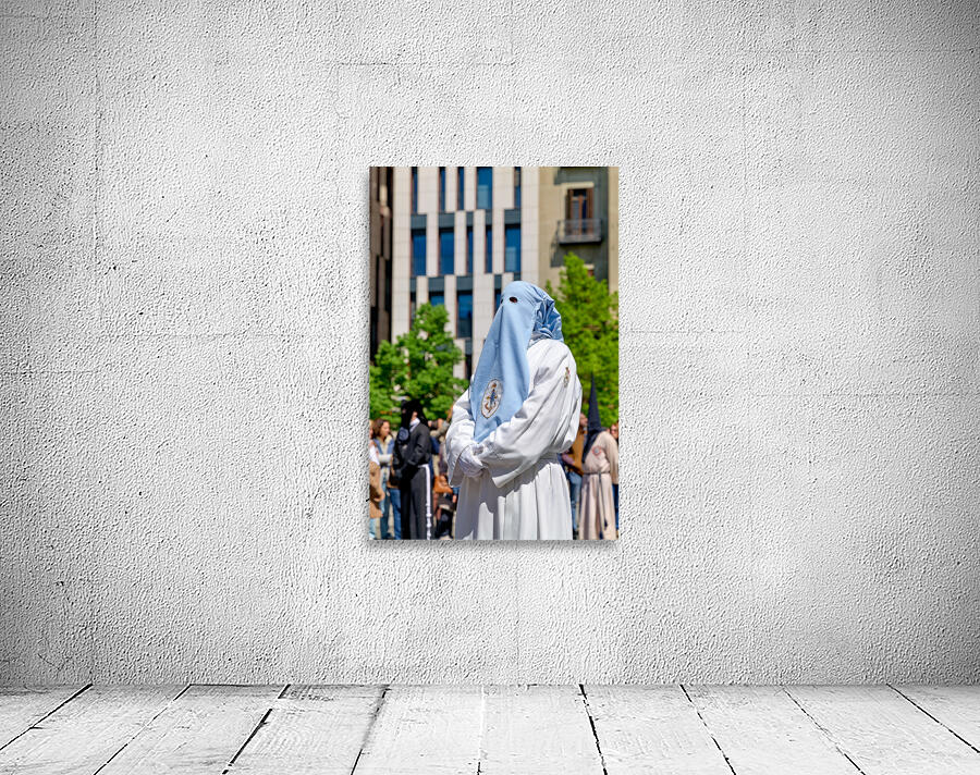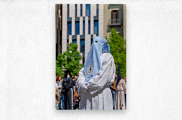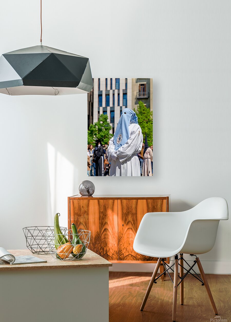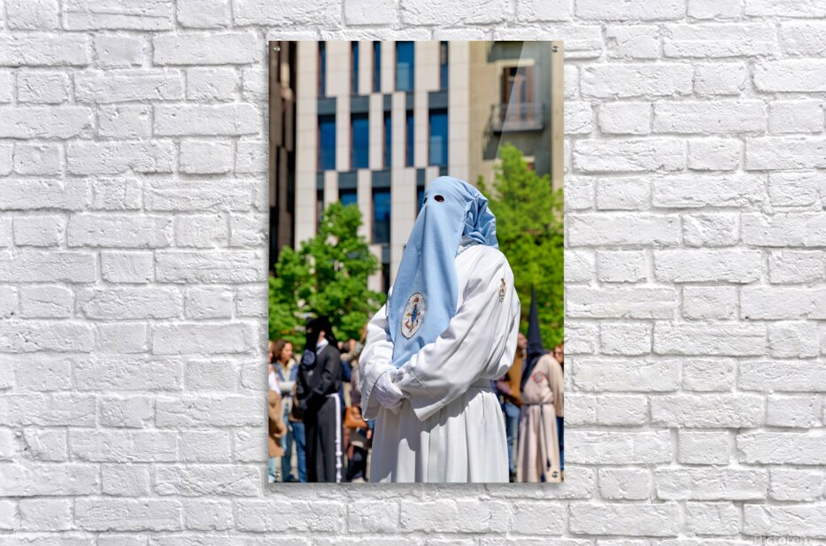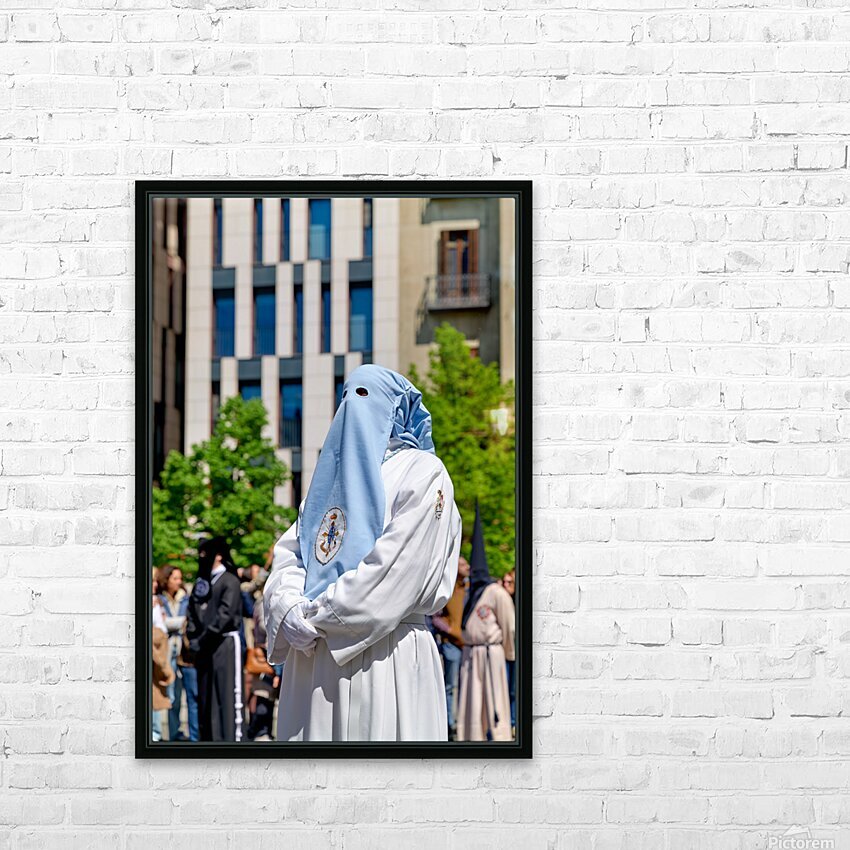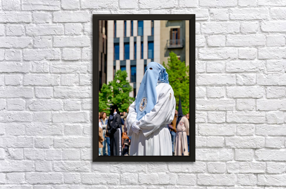 "Easter Holy Week procession in Zaragoza Spain with participants" in a framed print.