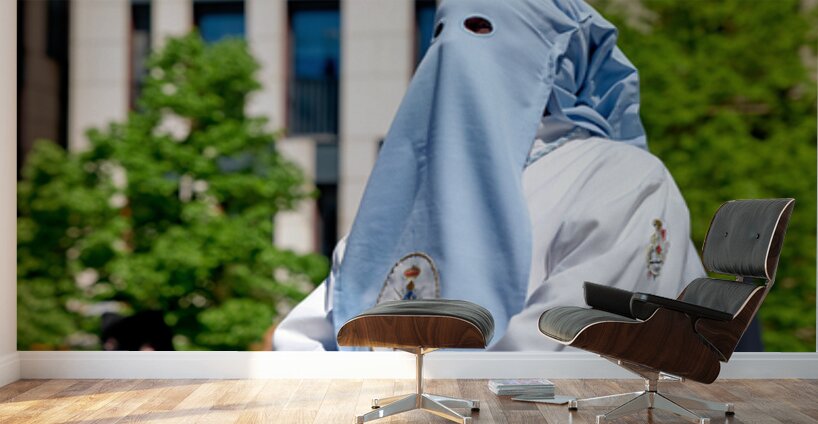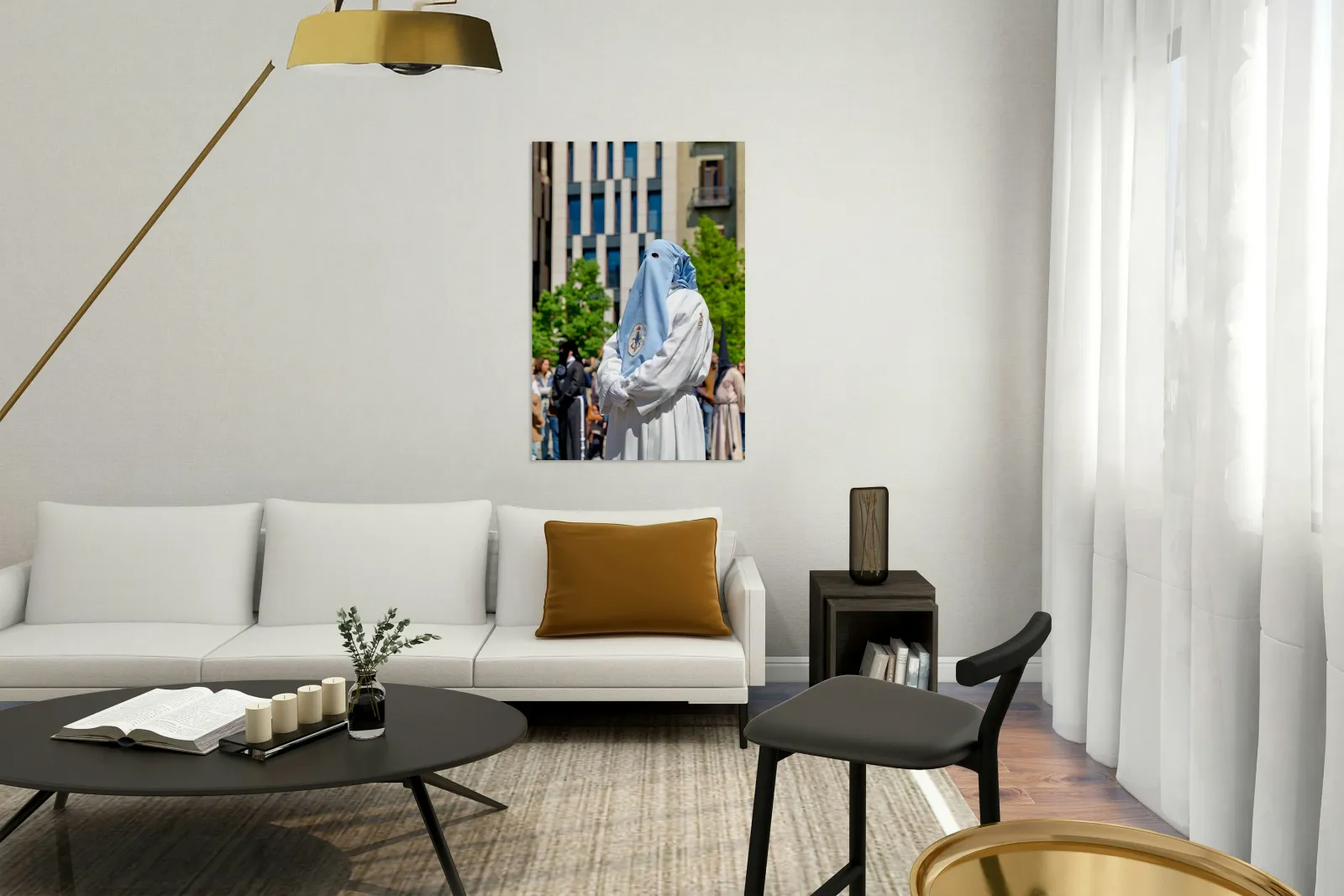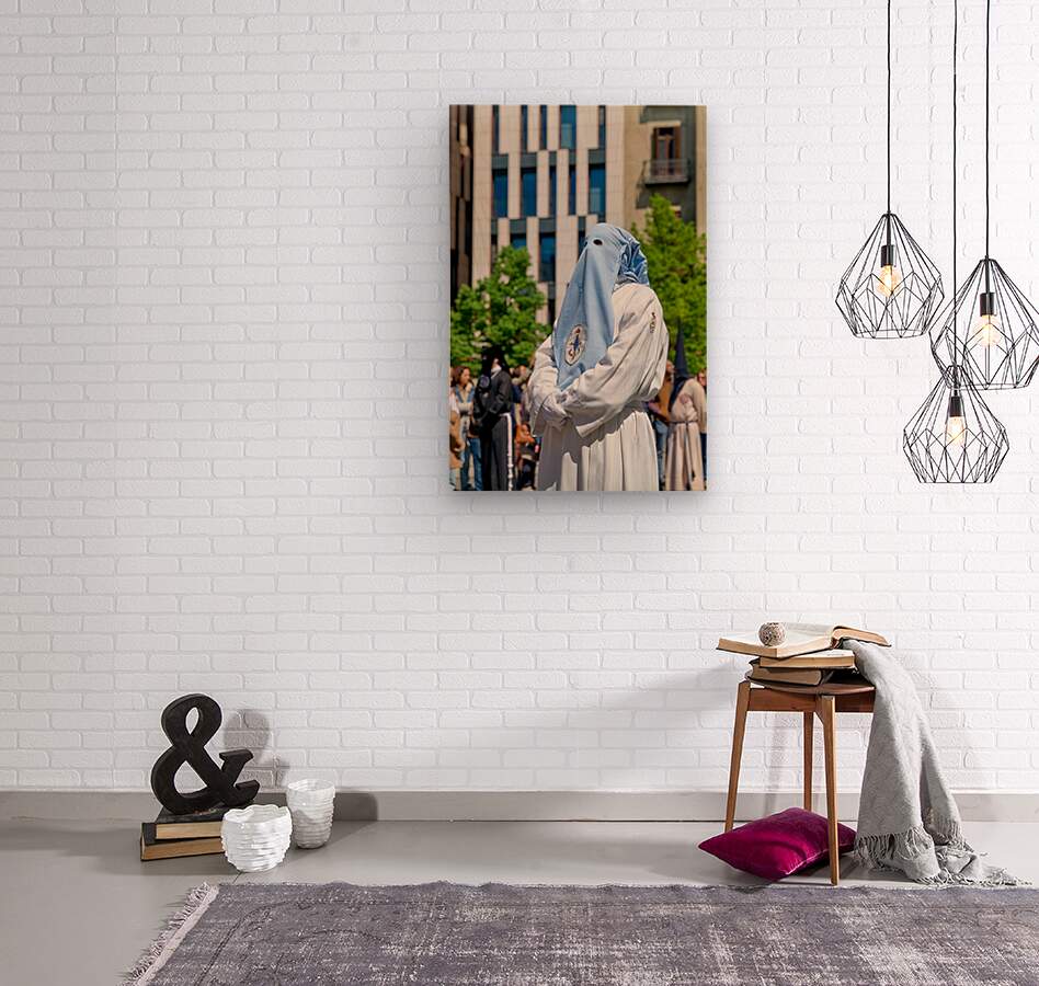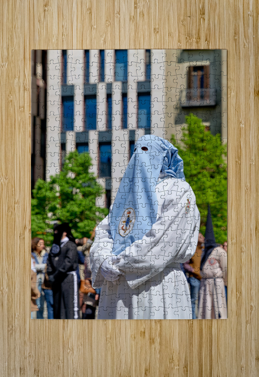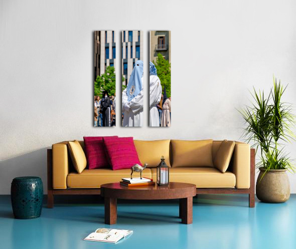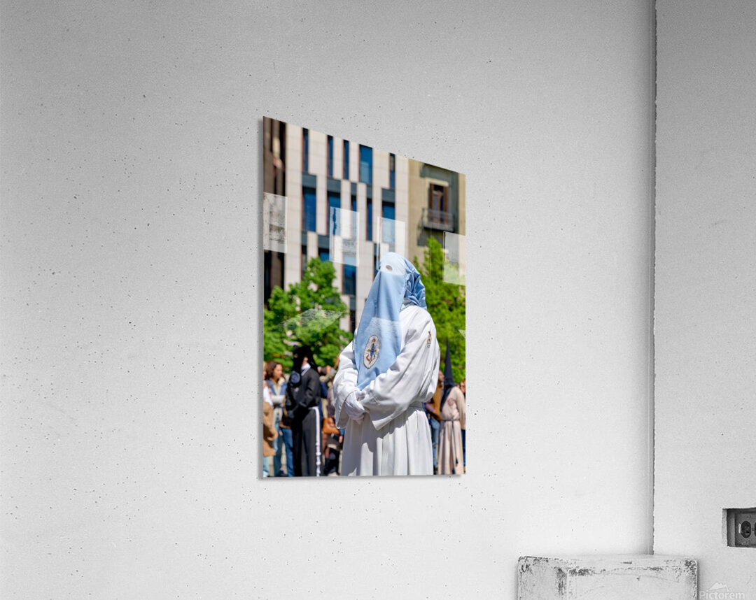 "Easter Holy Week procession in Zaragoza Spain with participants" in a framed print.