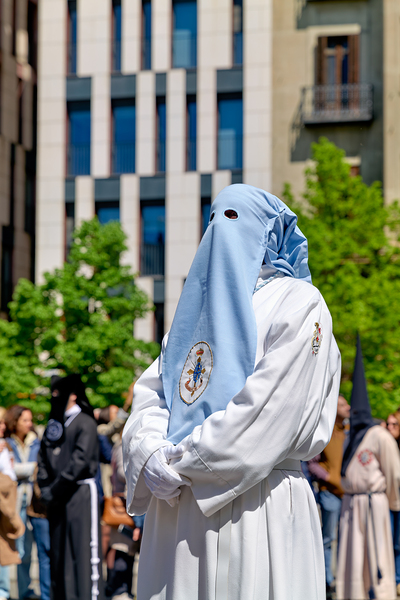 During Easter Holy Week in Zaragoza participants in traditional costumes take part in processions. The event attracts many spectators.