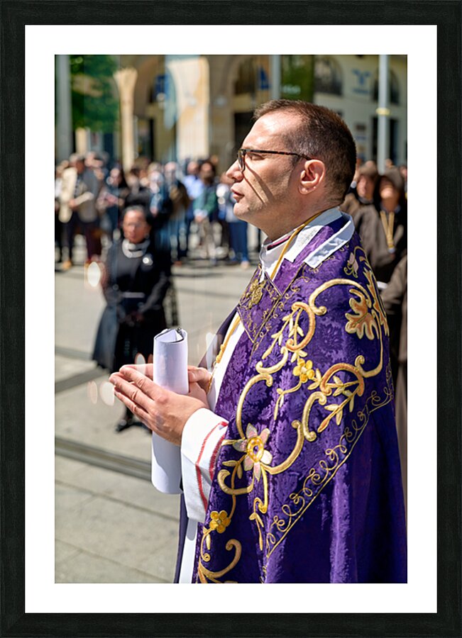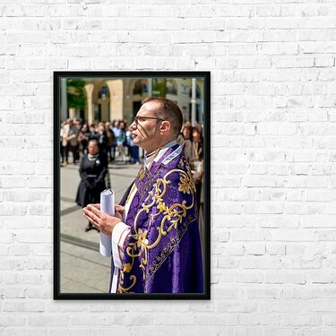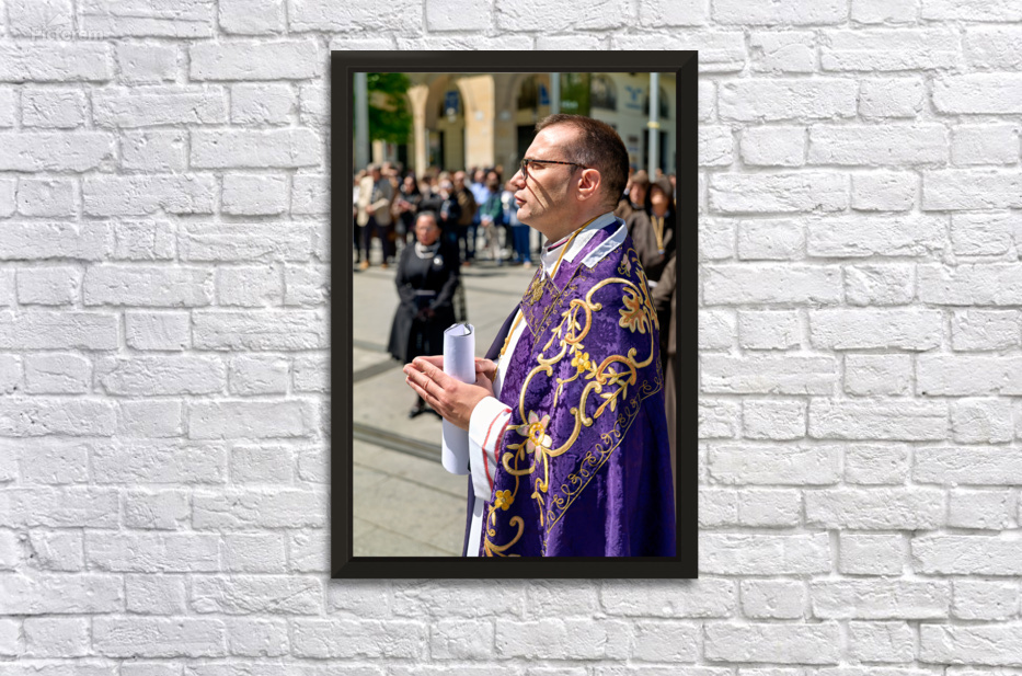 "Procession during Easter Holy Week in Zaragoza Spain" in a framed print.