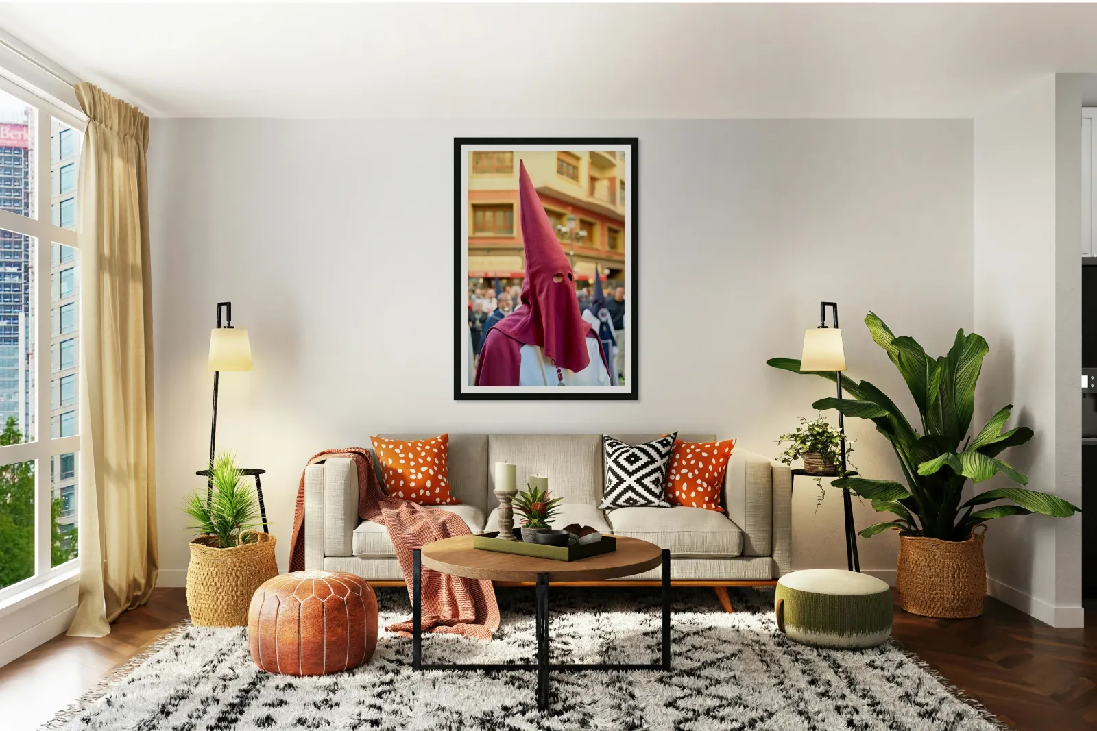 "Easter processions in Zaragoza with traditional garb" in a framed print.
