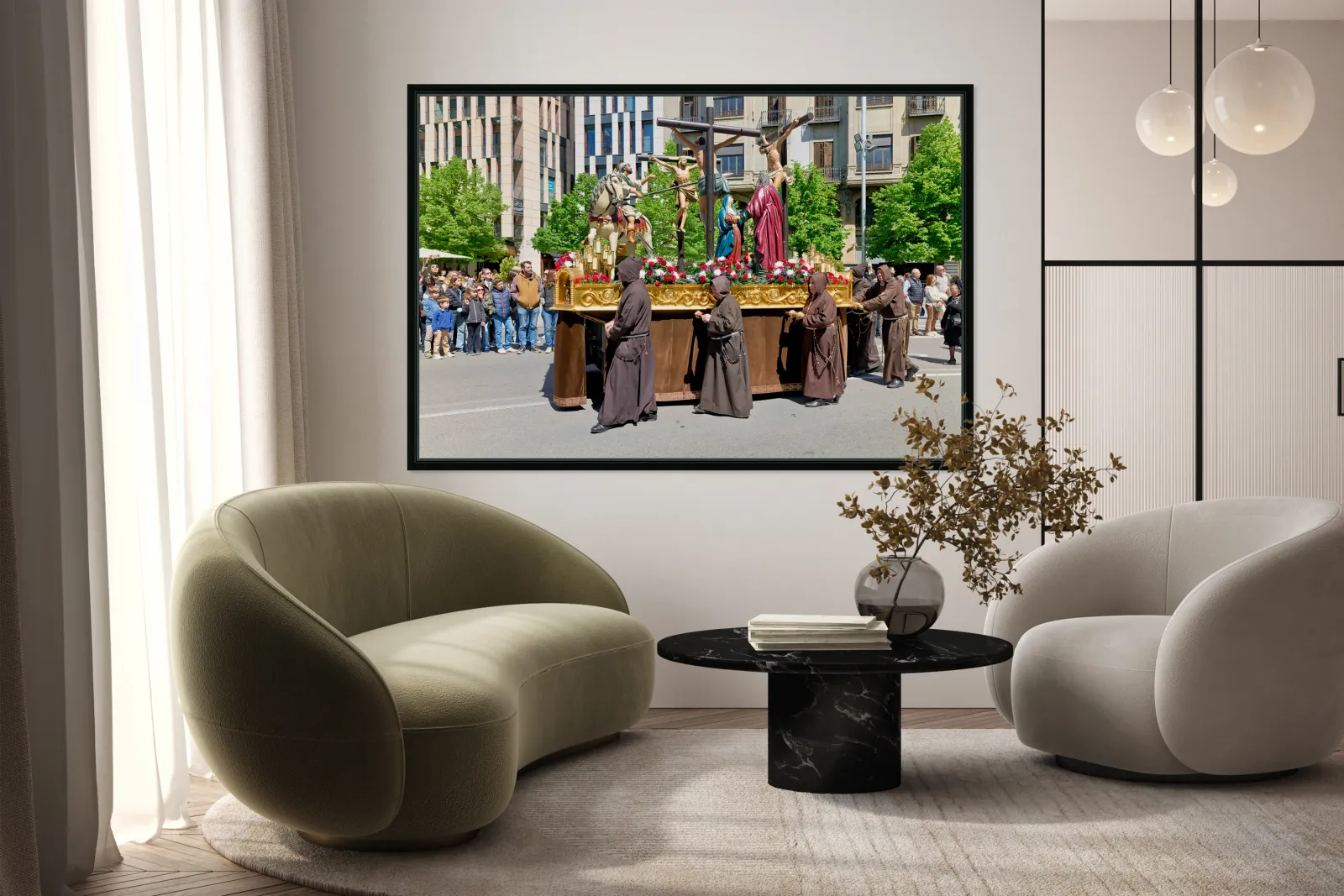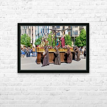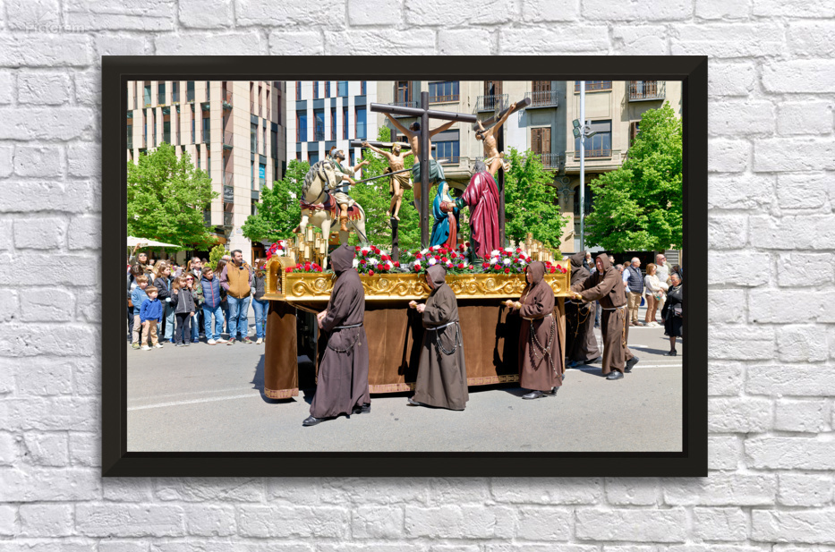 "Procession during Easter Holy Week in Zaragoza Spain" in a framed print.