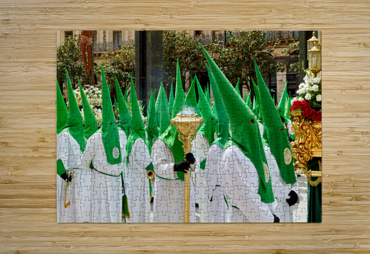 Participants in traditional dress take part in Easter processions in Zaragoza during Holy Week. The event attracts many observers and is lively.