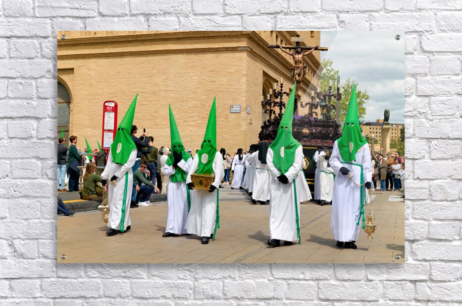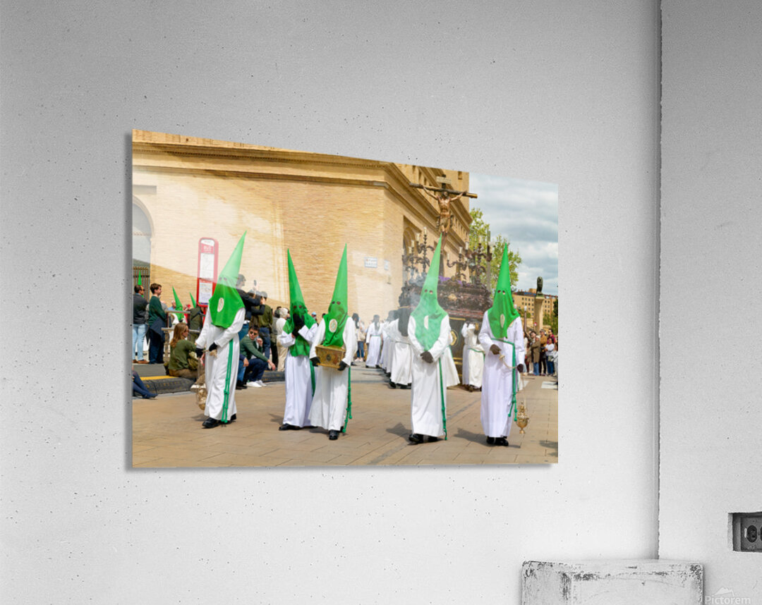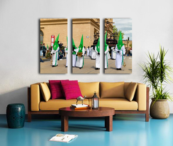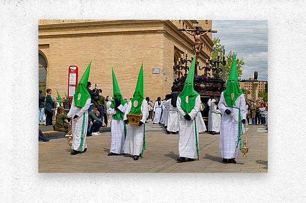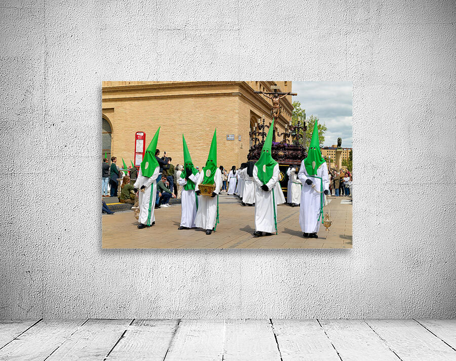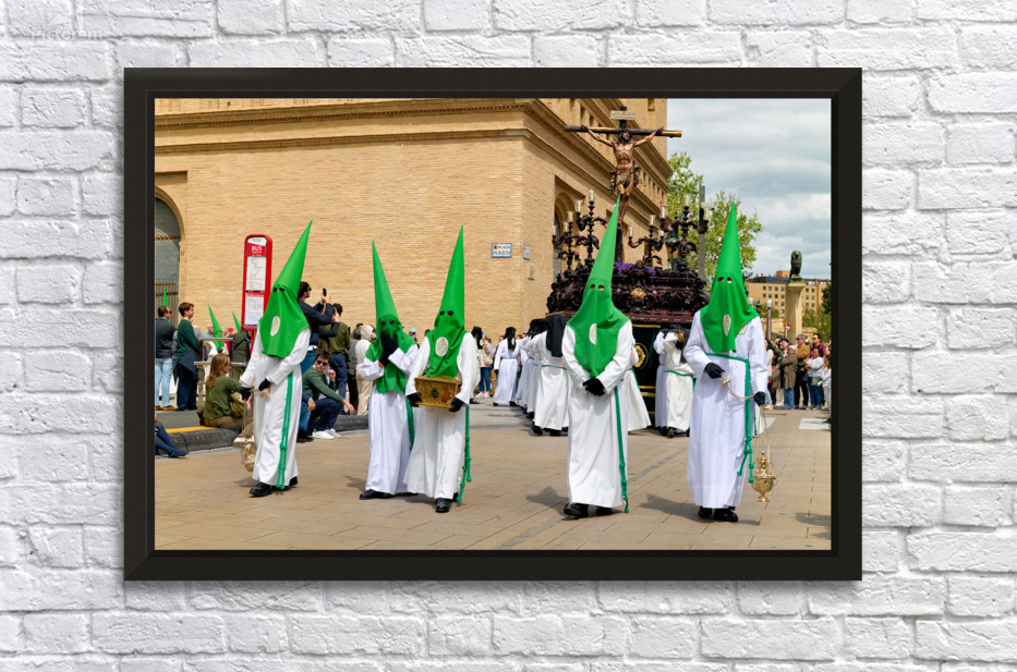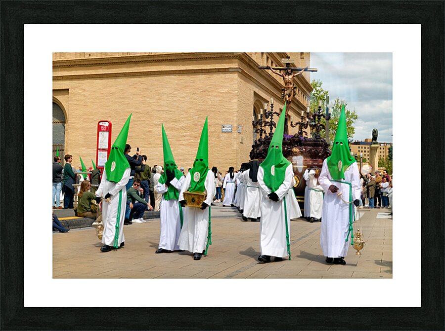 "Processions in Zaragoza during Holy Week celebrations" in a framed print.