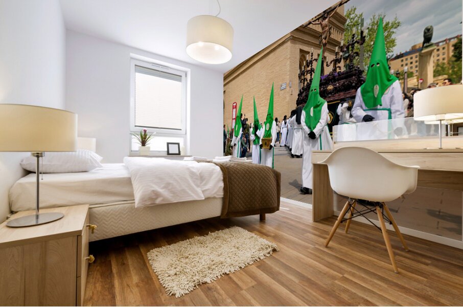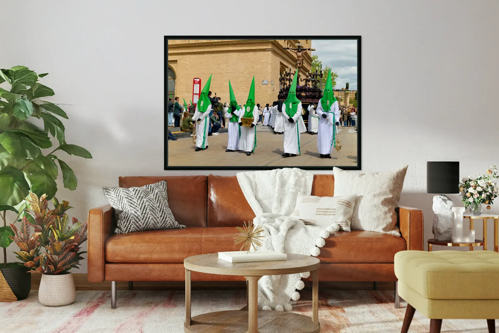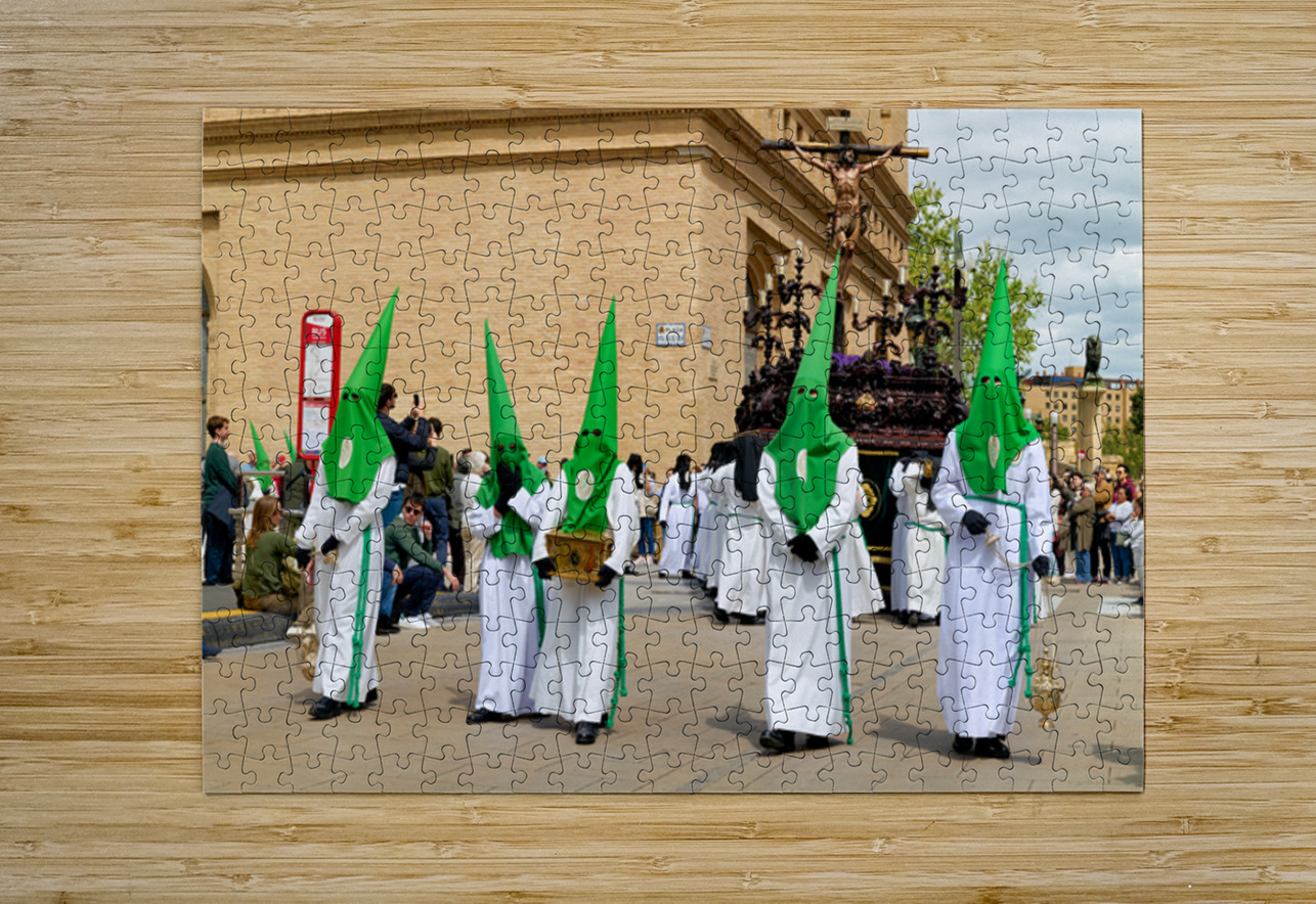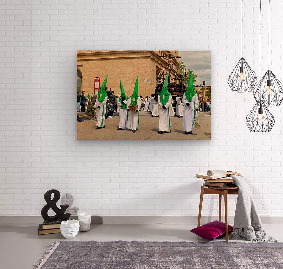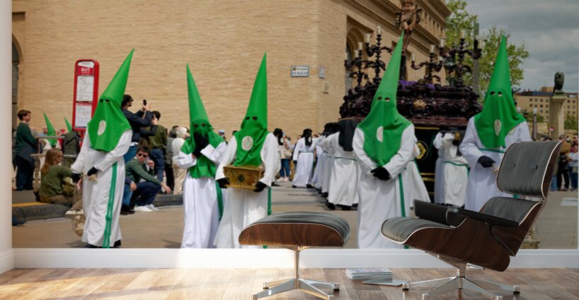 "Processions in Zaragoza during Holy Week celebrations" in a framed print.