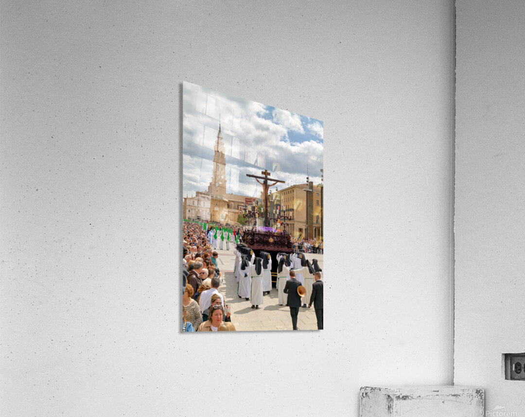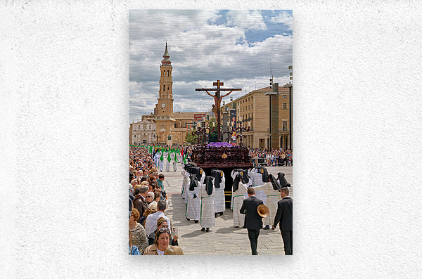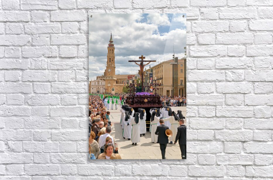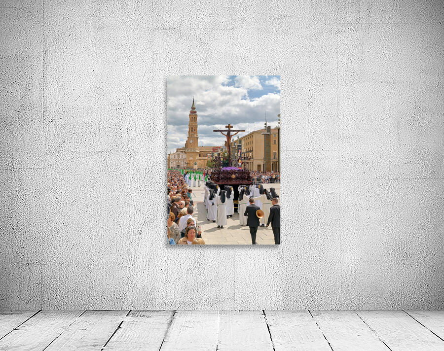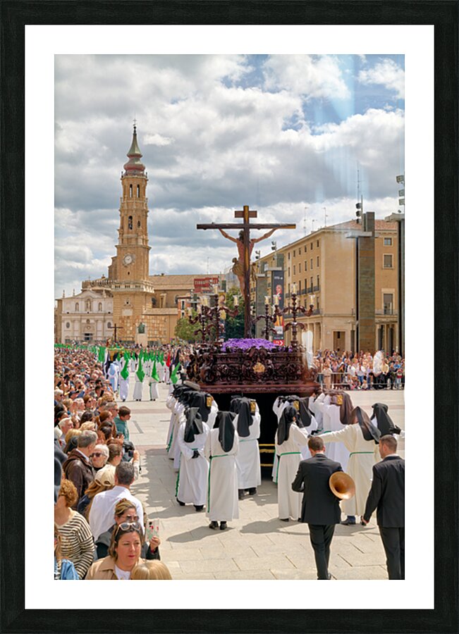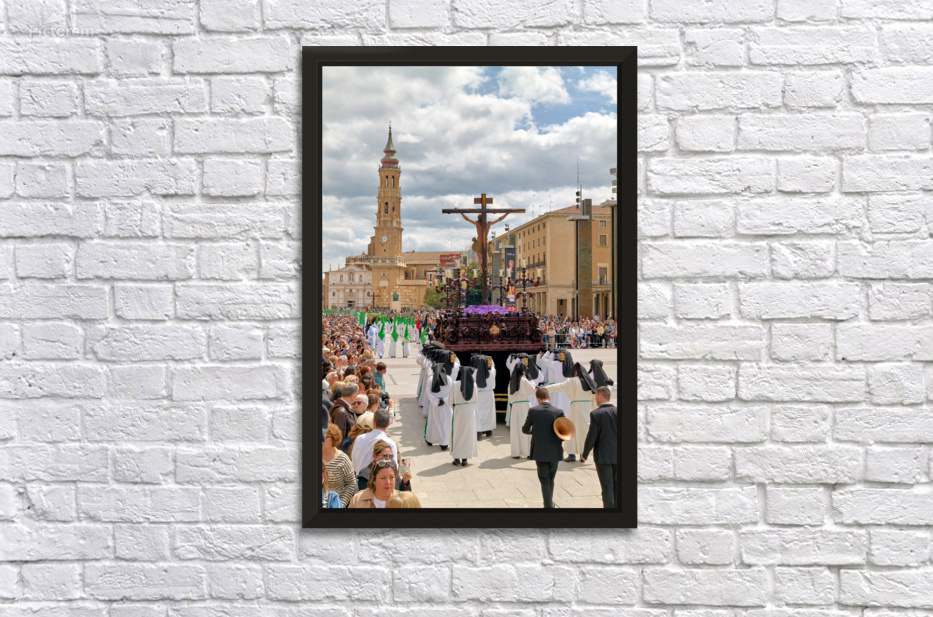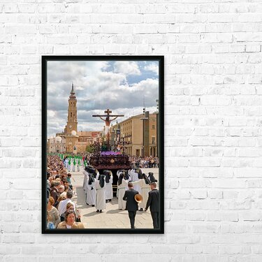 "Procession during Easter Holy Week in Zaragoza Spain" in a framed print.