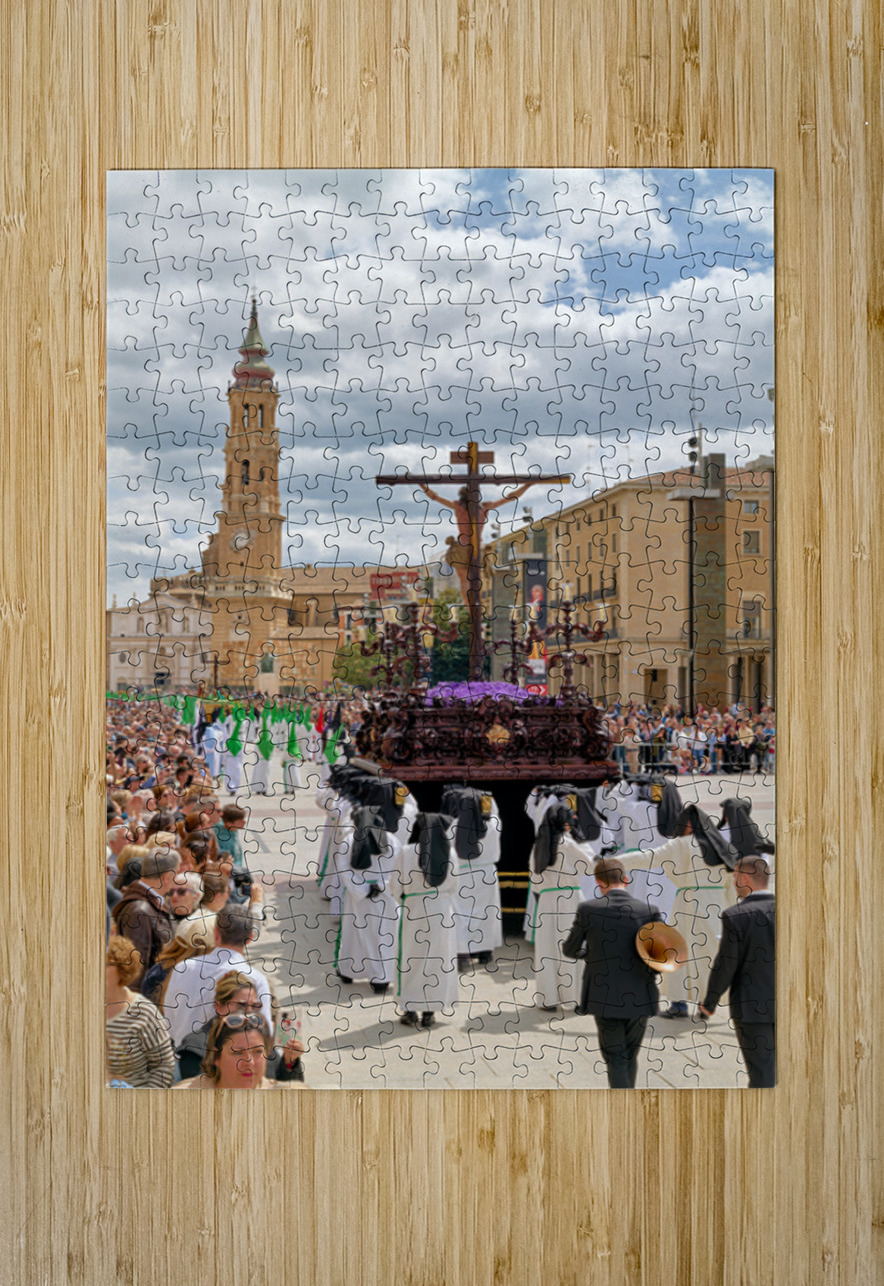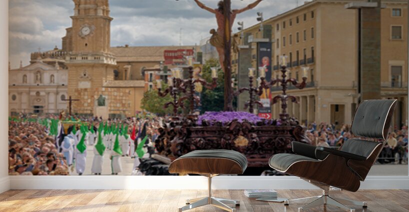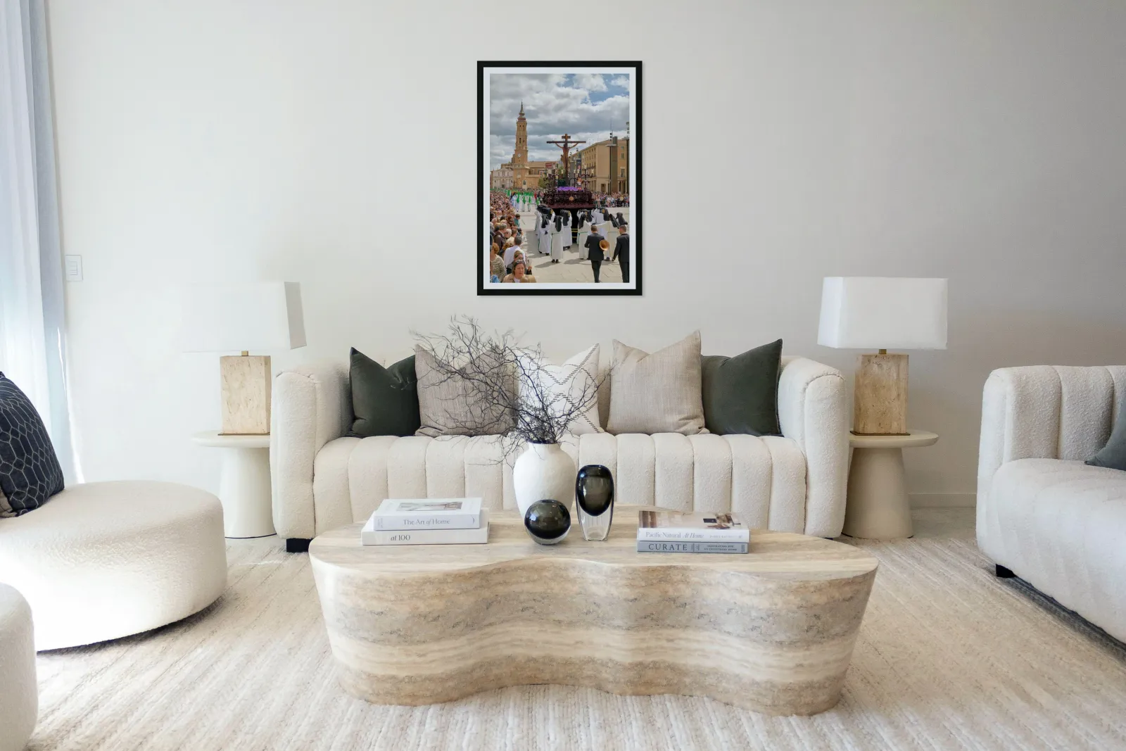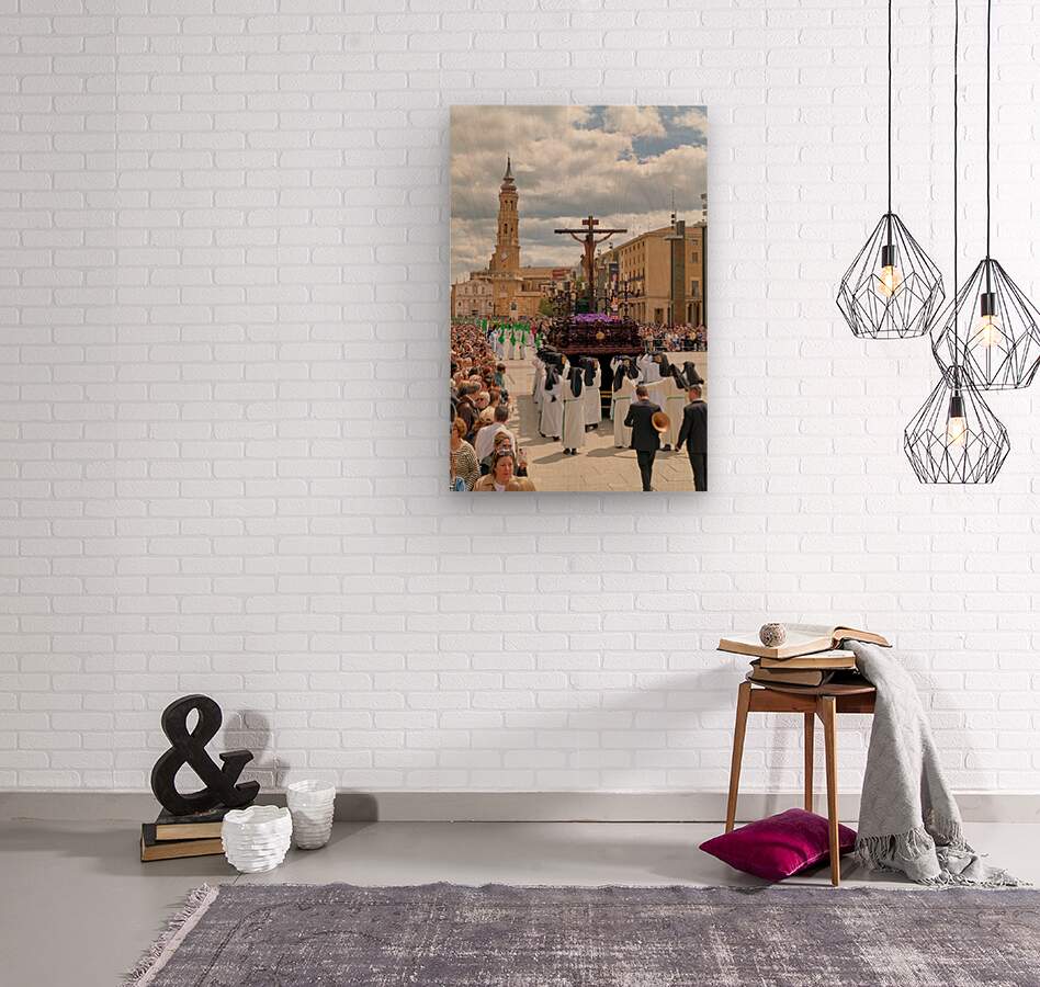 "Procession during Easter Holy Week in Zaragoza Spain" in a framed print.