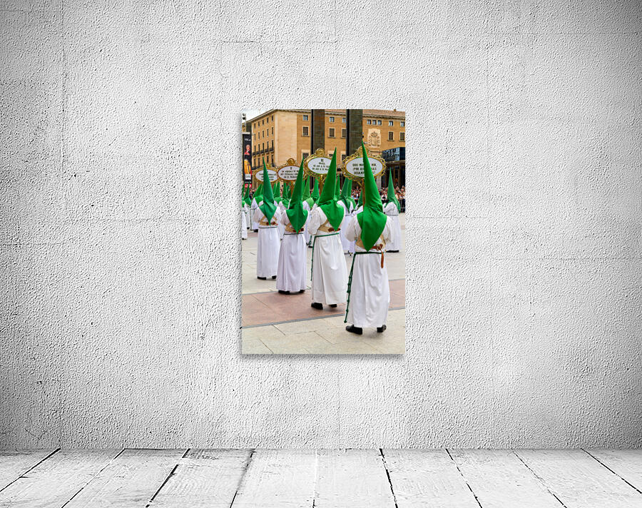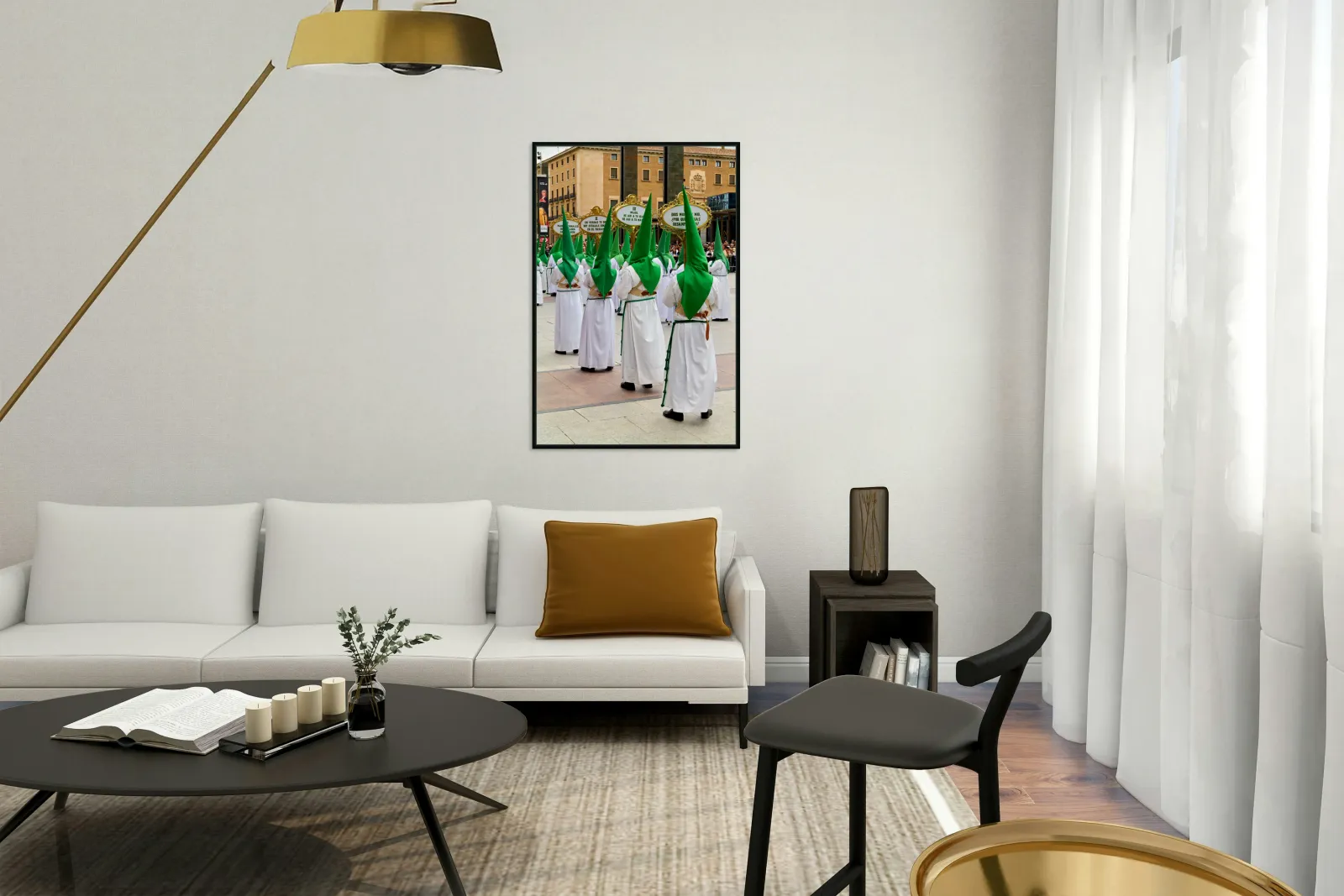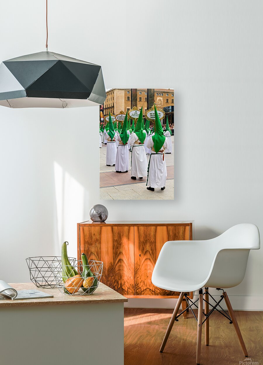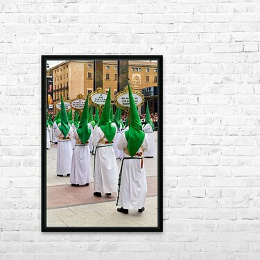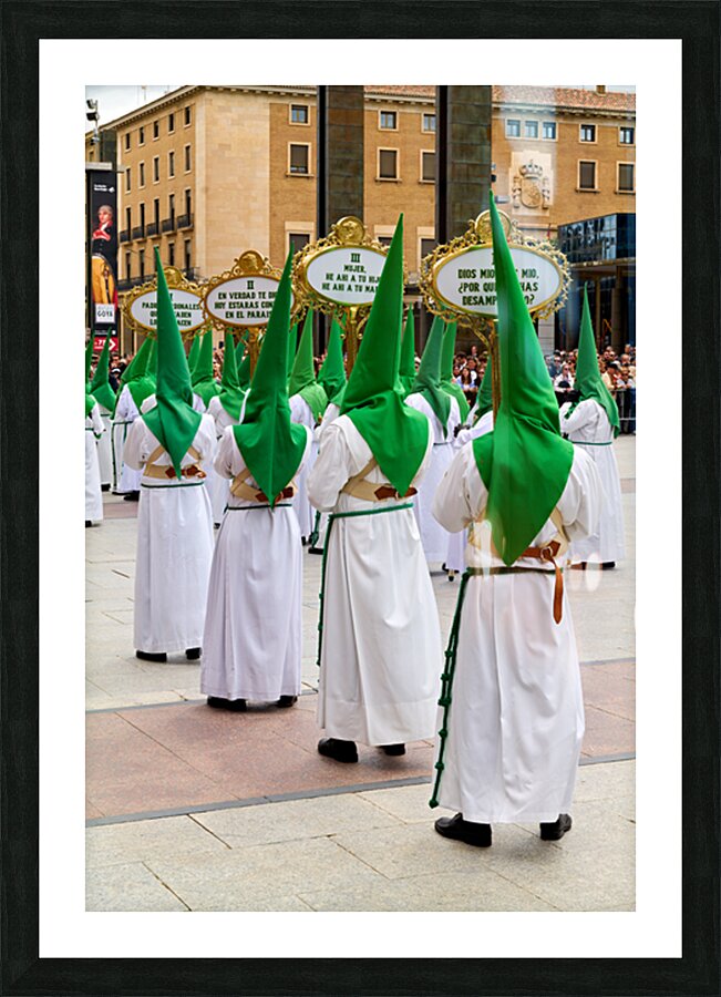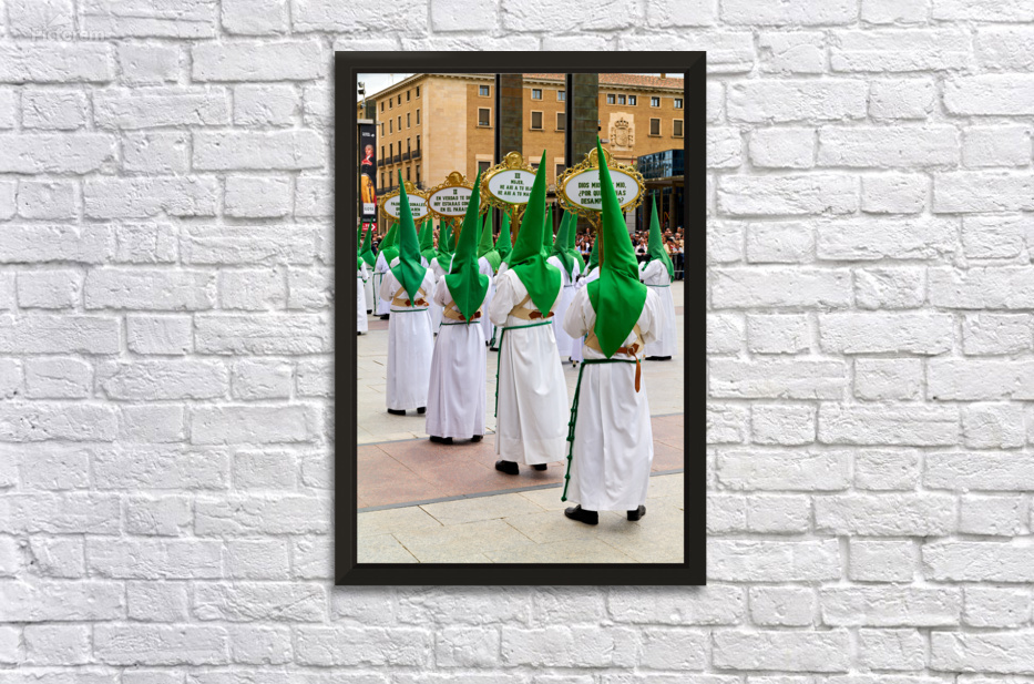"Celebration of Easter Holy Week processions in Zaragoza Spain" in a framed print.