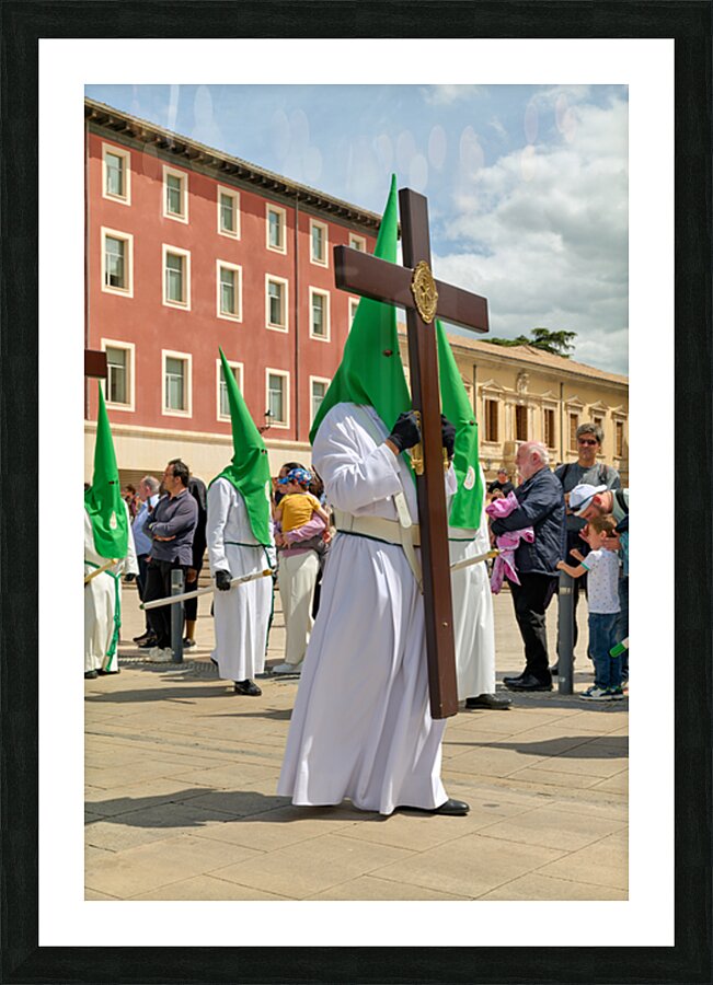 "Easter processions in Zaragoza Aragon Spain during Holy Week" in a framed print.