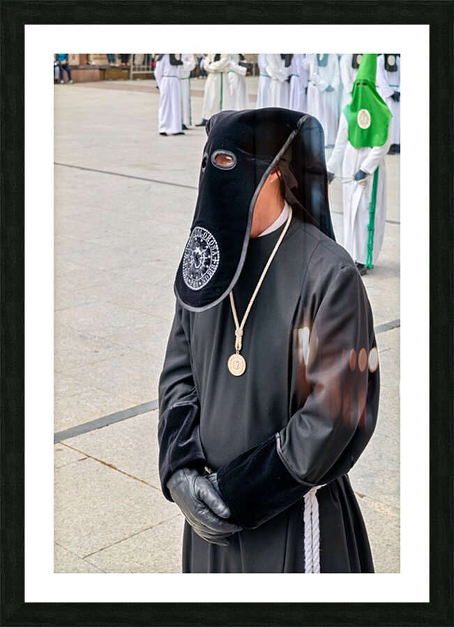 "Easter processions in Zaragoza with traditional attire" in a framed print.