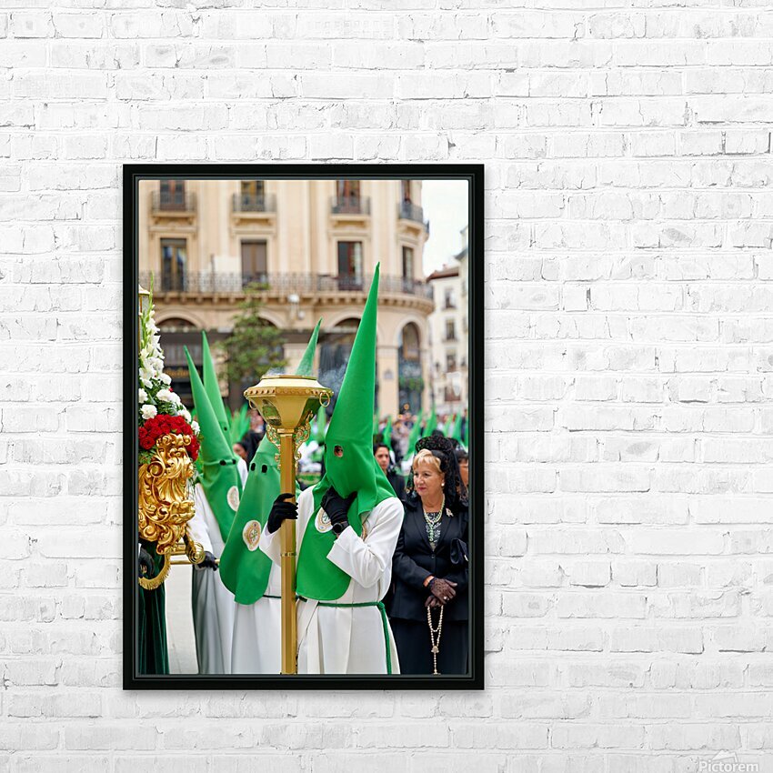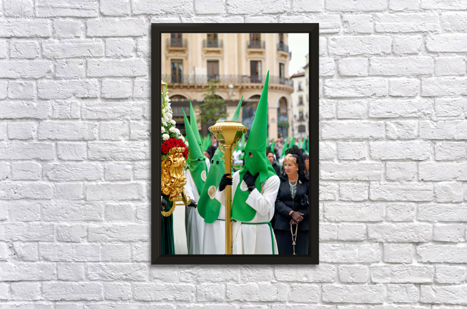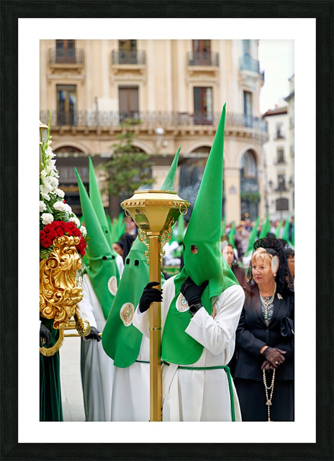 "Processions in Zaragoza during Holy Week celebrations" in a framed print.