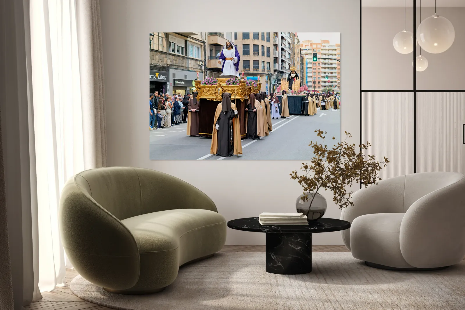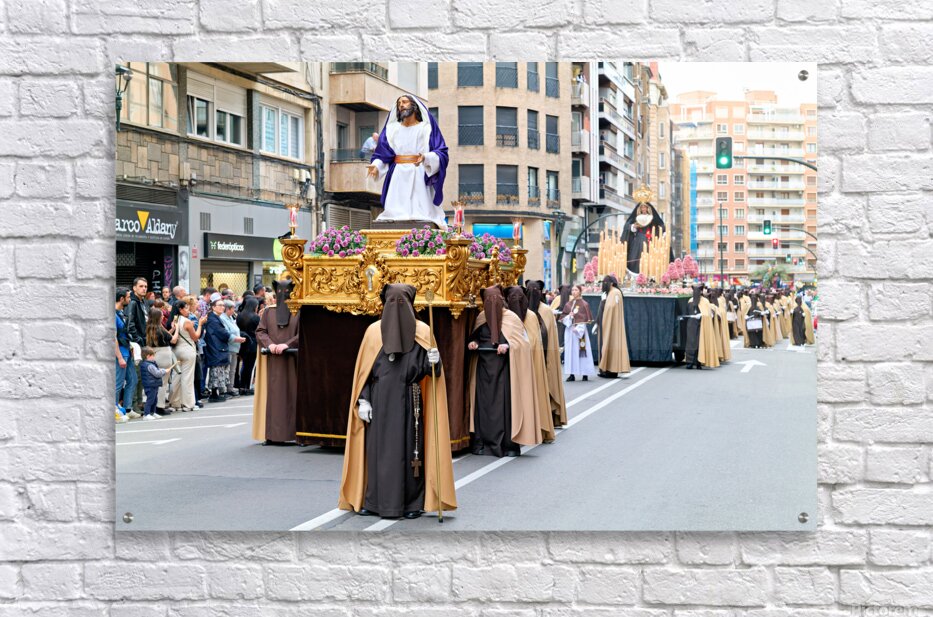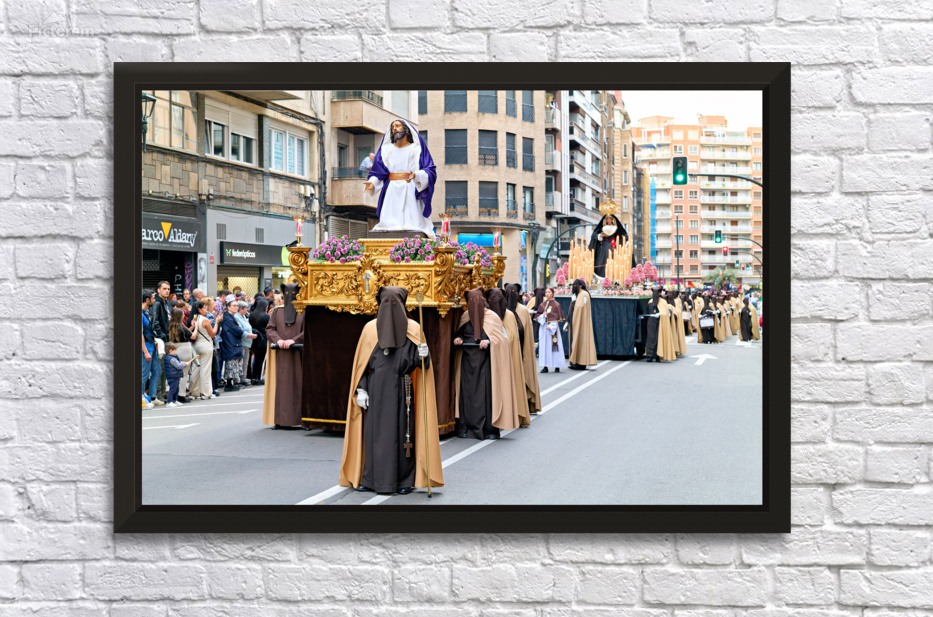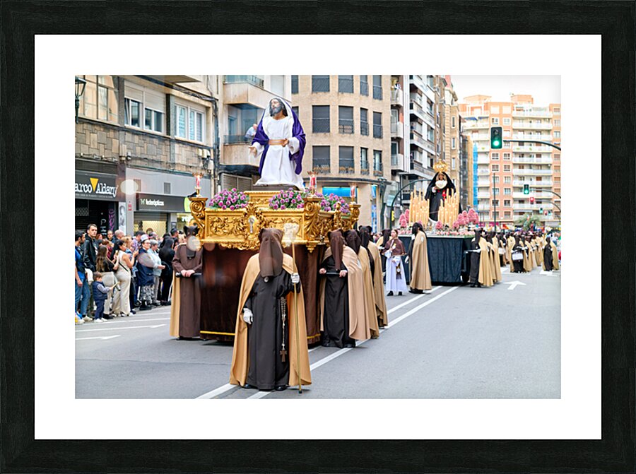 "Easter processions in Zaragoza Aragon during Holy Week" in a framed print.
