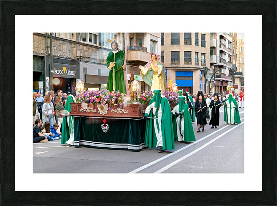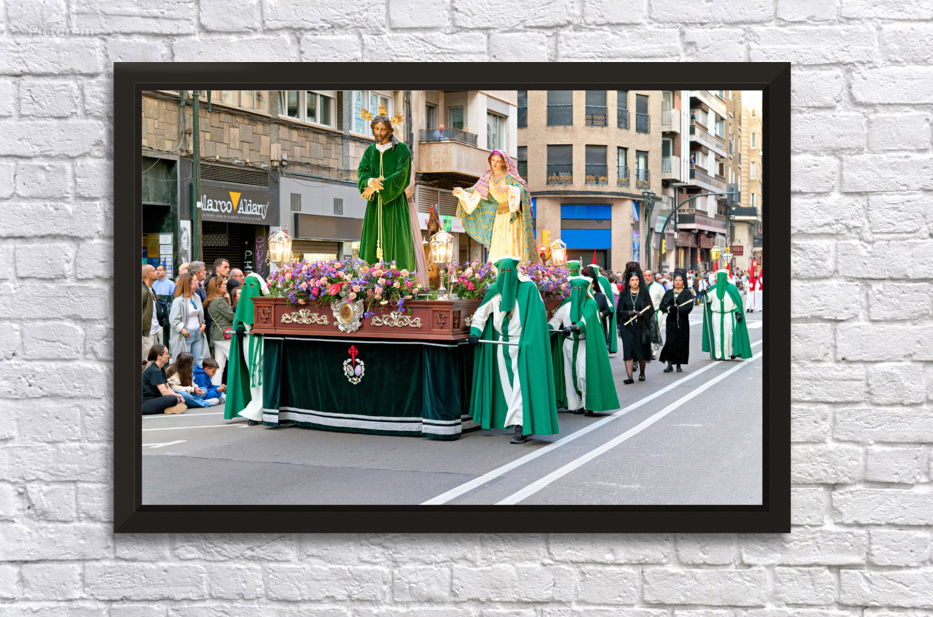 "Procession during Easter Holy Week in Zaragoza Spain" in a framed print.