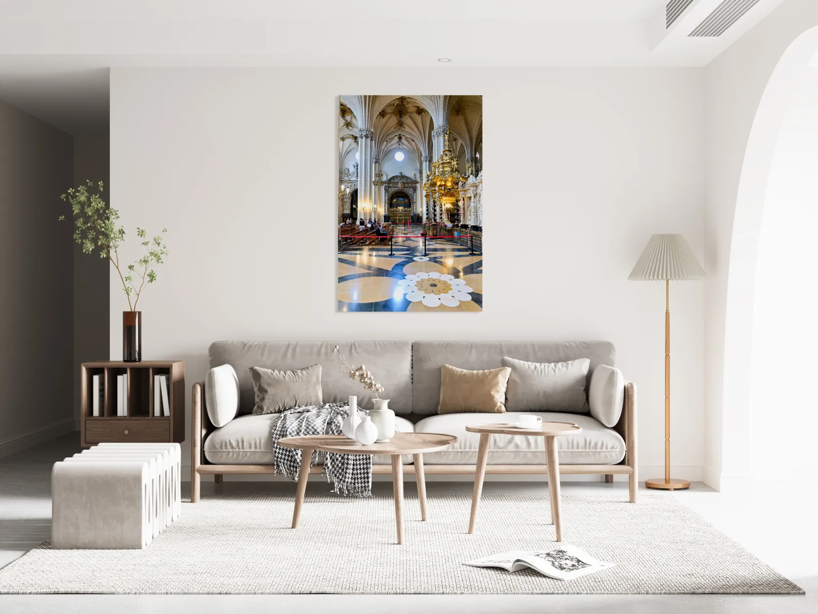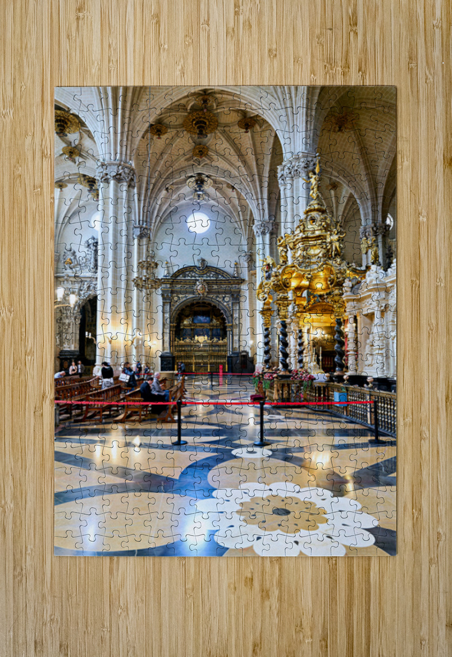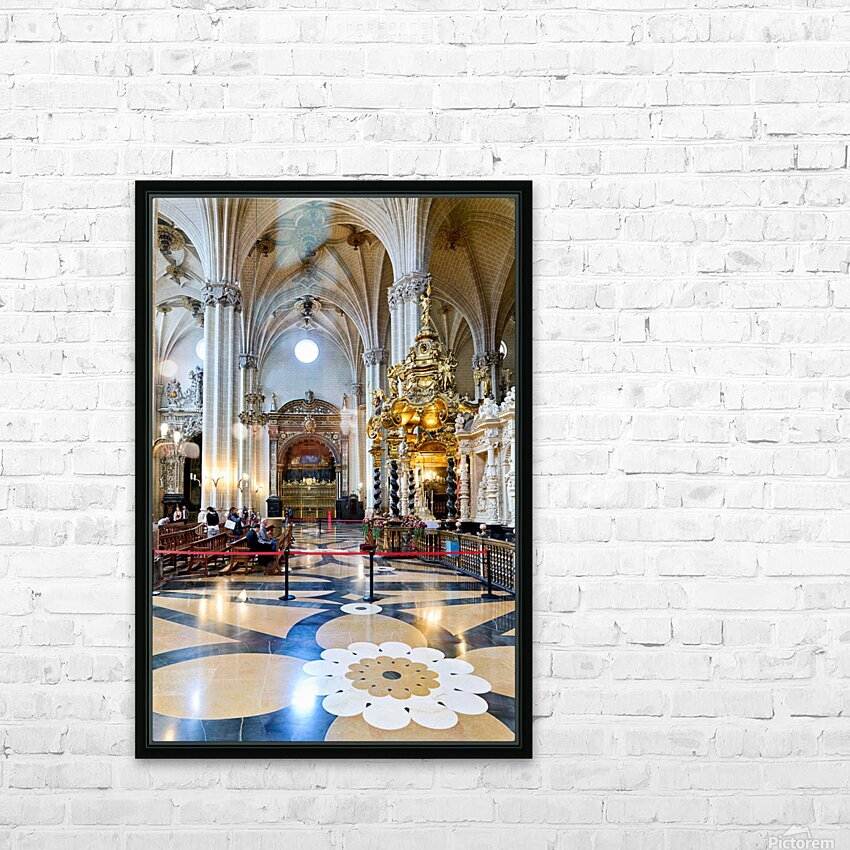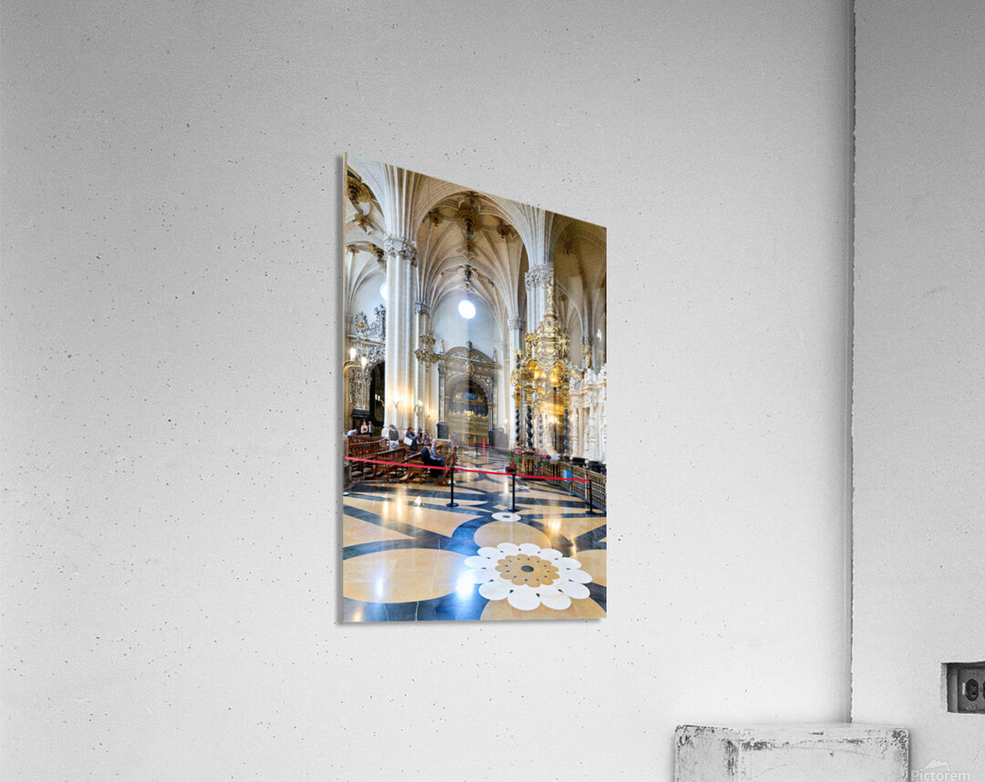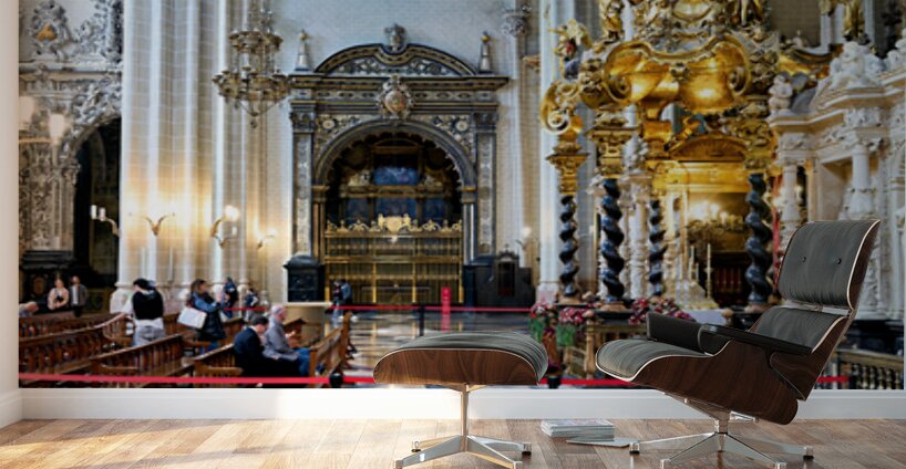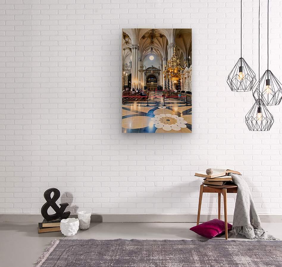 People view the detailed interior while others sit in calm areas of the Cathedral of the Savior in Zaragoza during a visit.