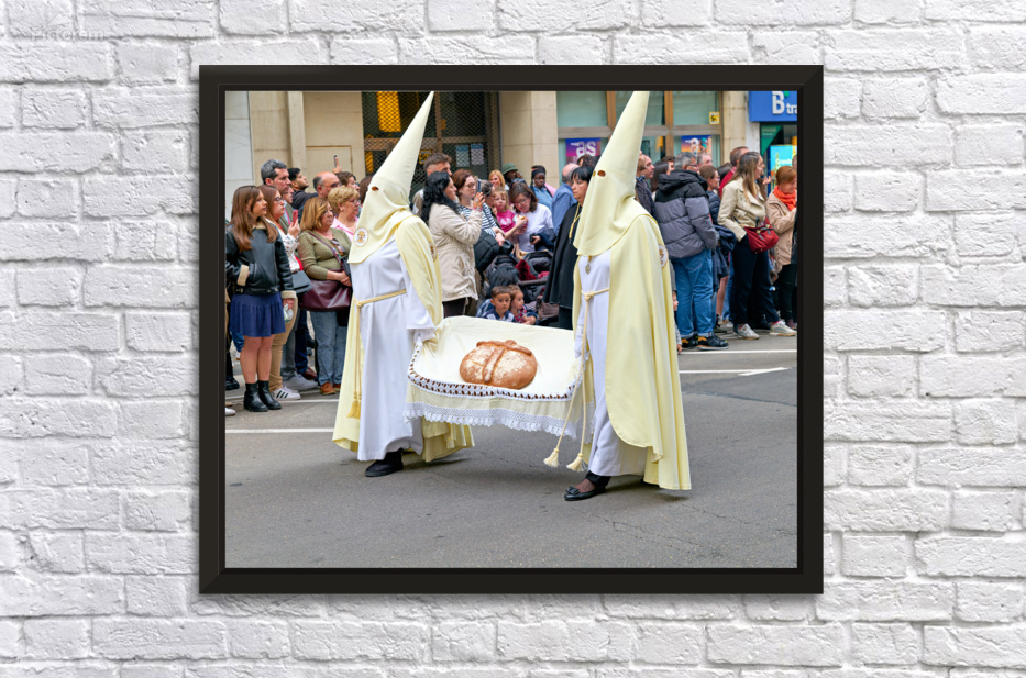 "Processions during Easter Holy Week in Zaragoza Spain" in a framed print.