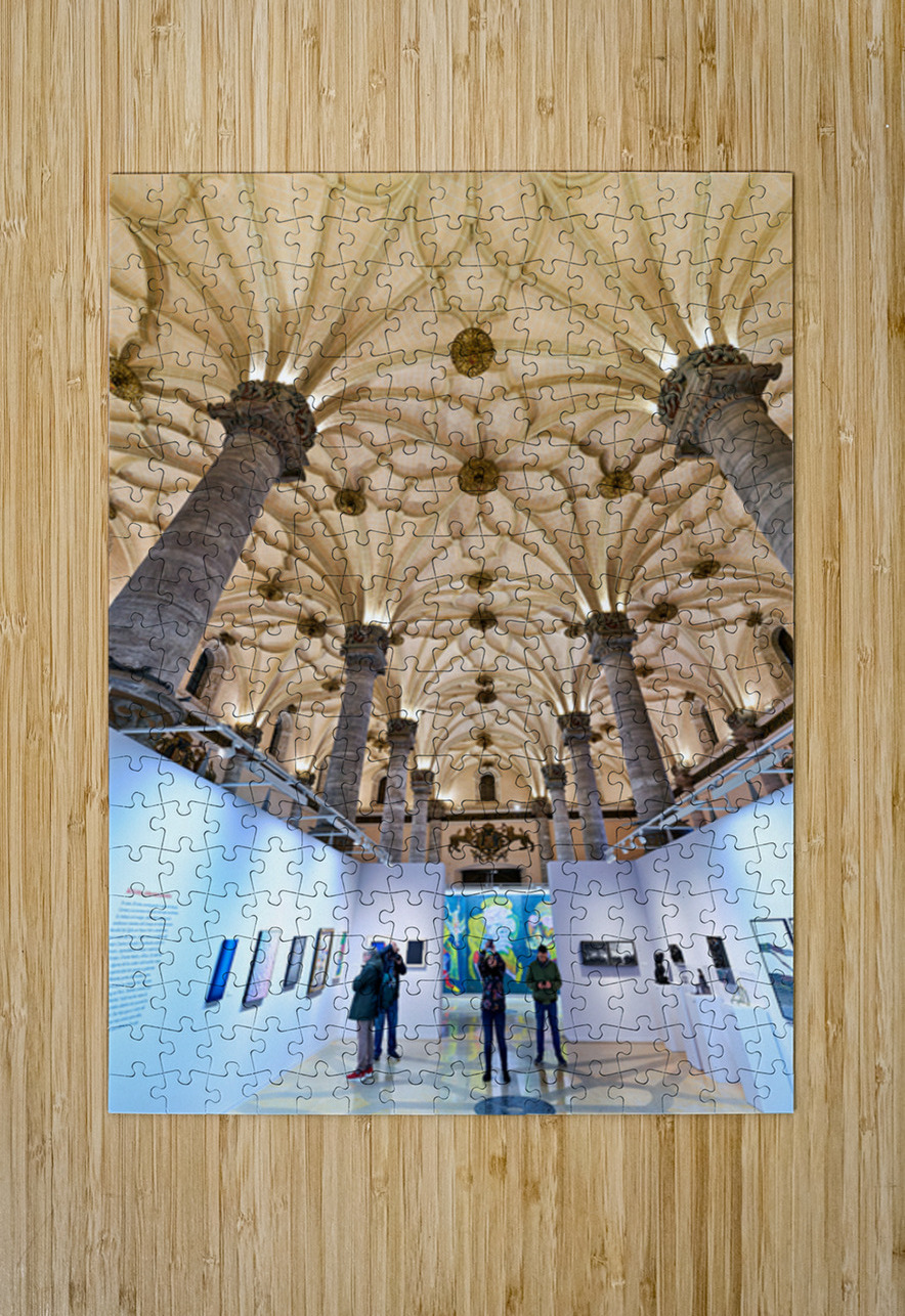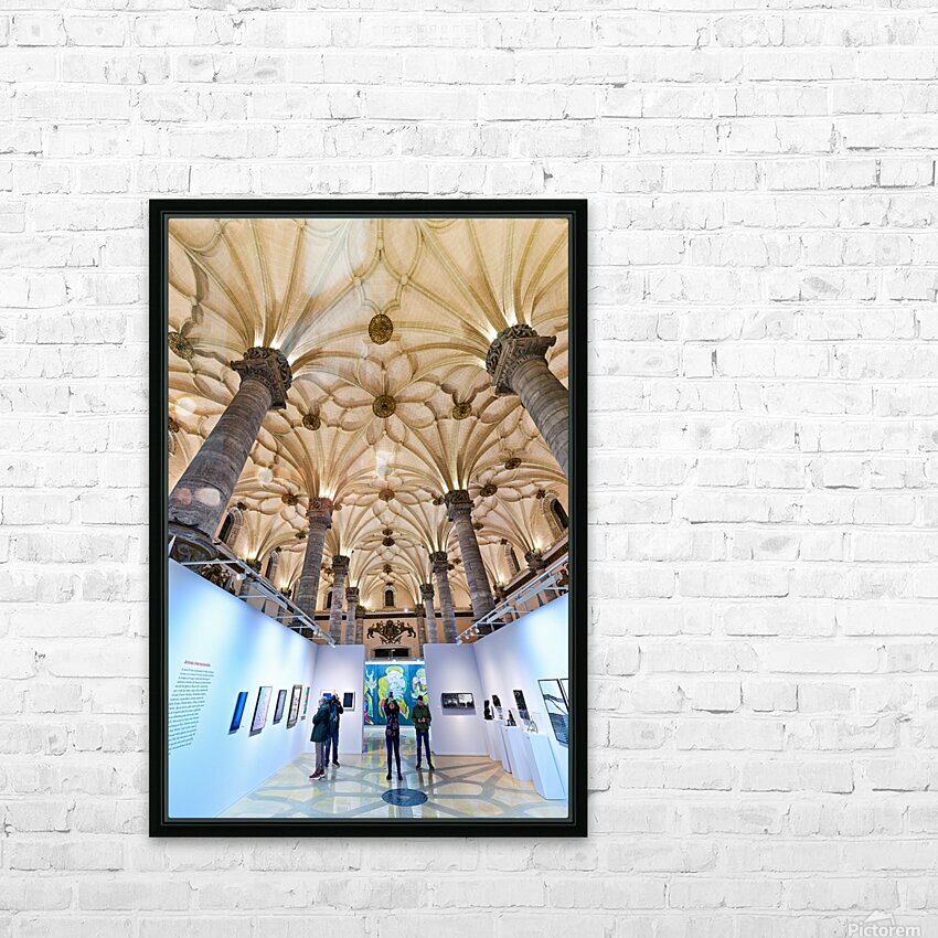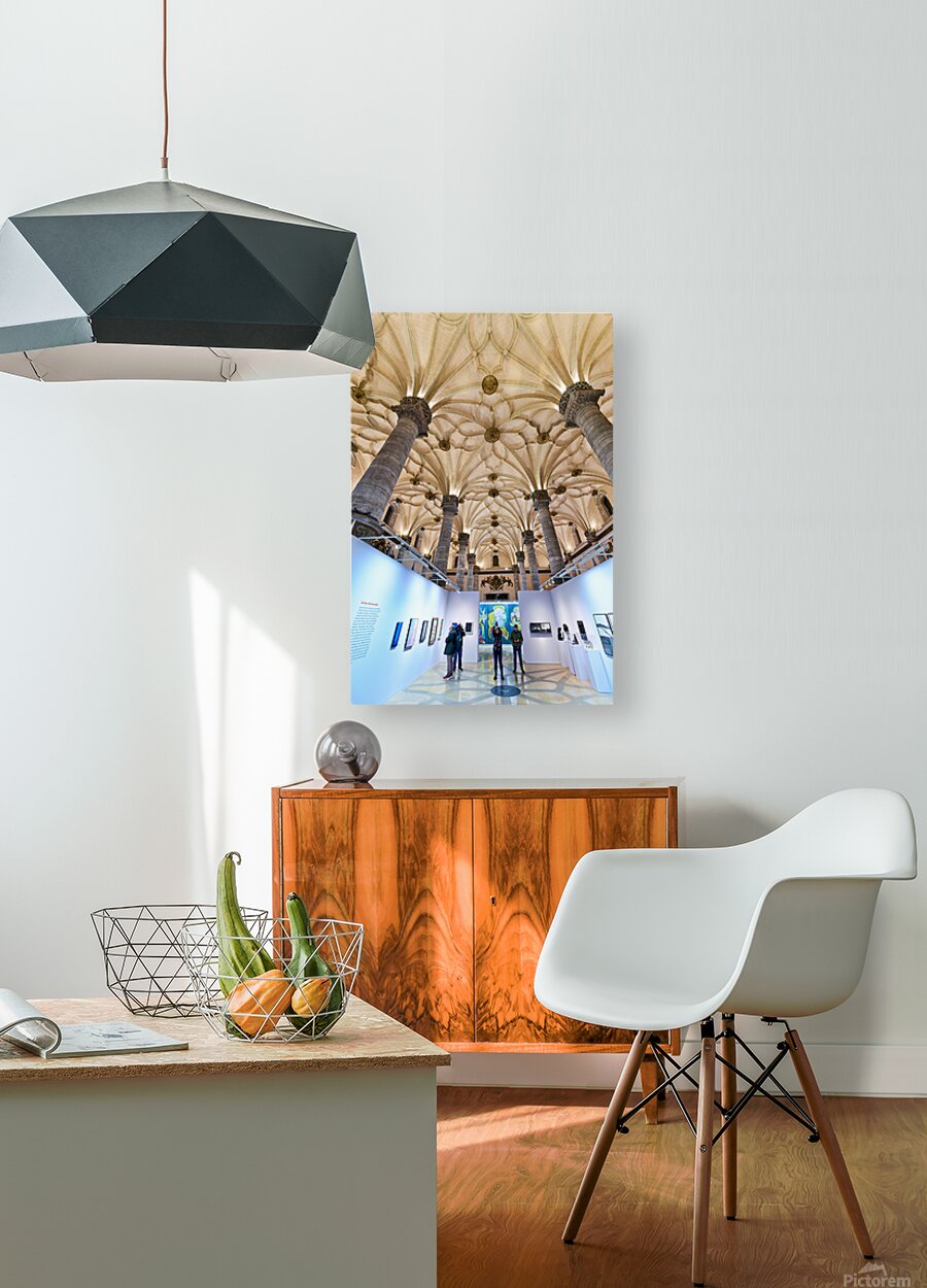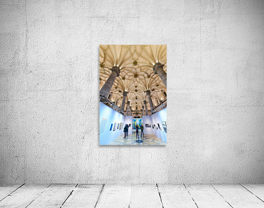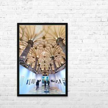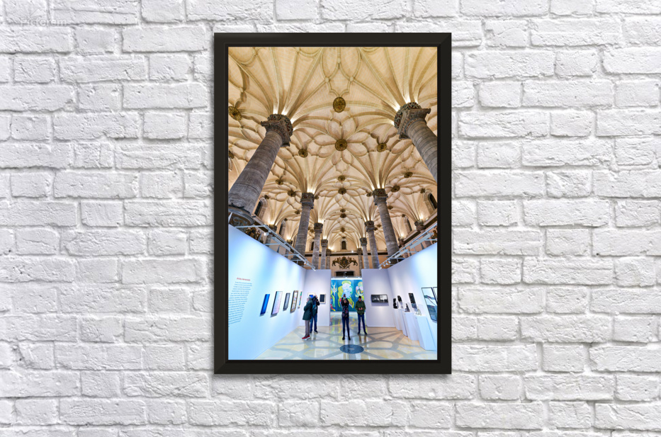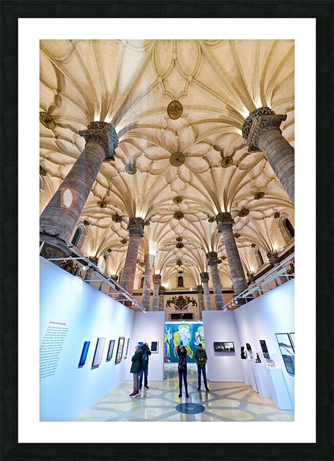 "Visitors explore art at La Lonja in Zaragoza" in a framed print.