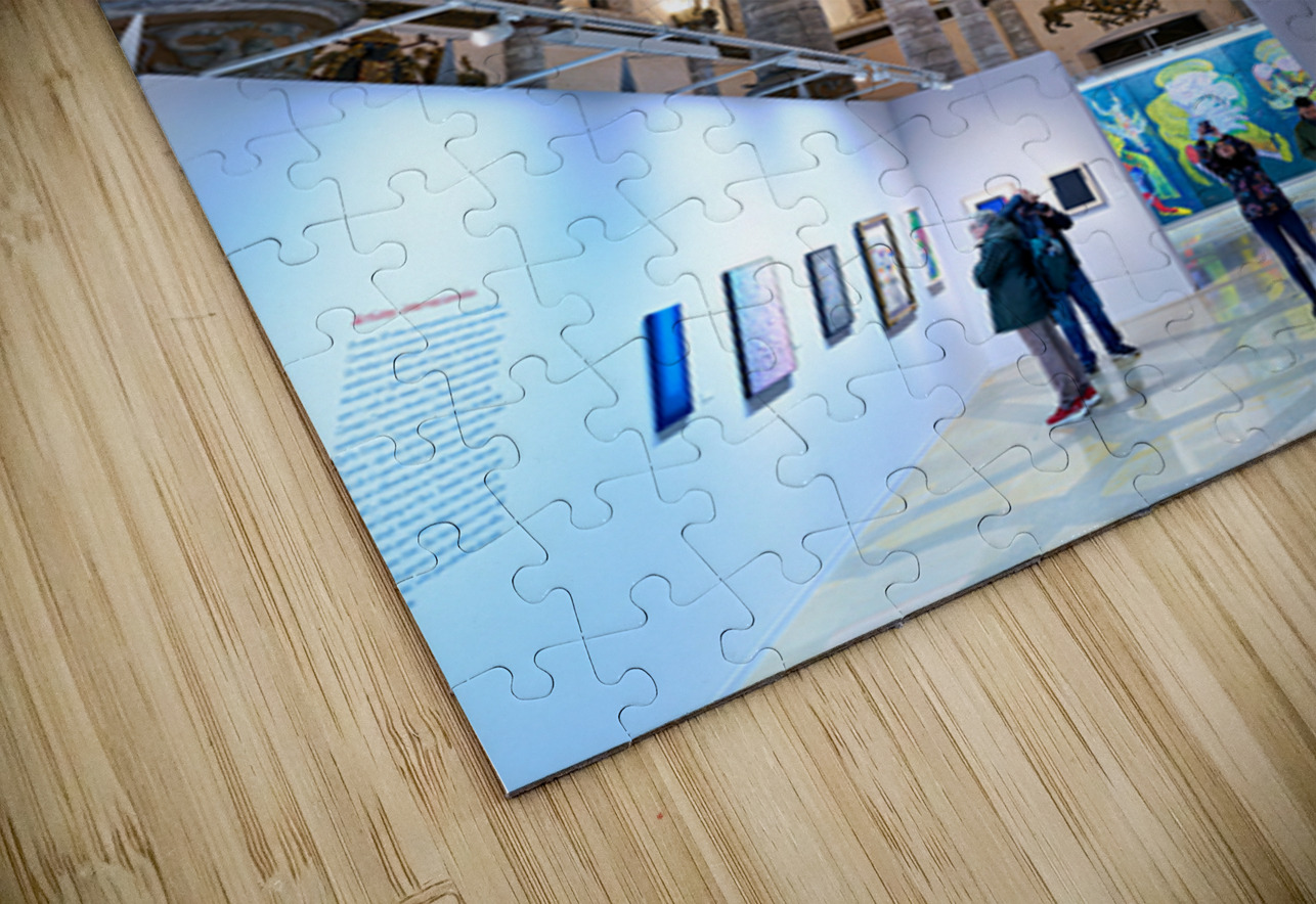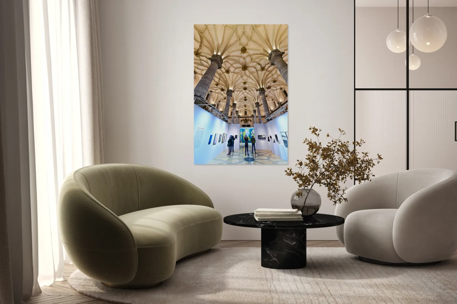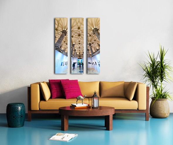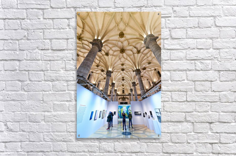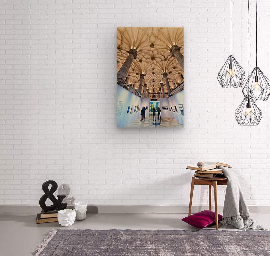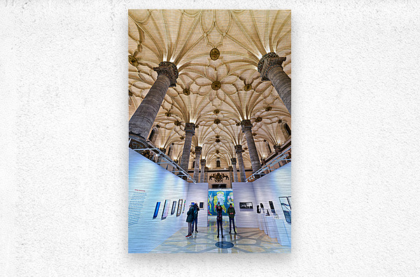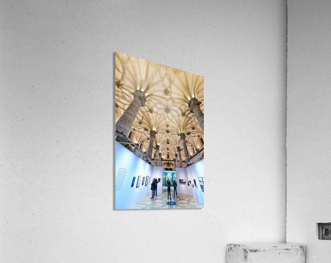 "Visitors explore art at La Lonja in Zaragoza" in a framed print.