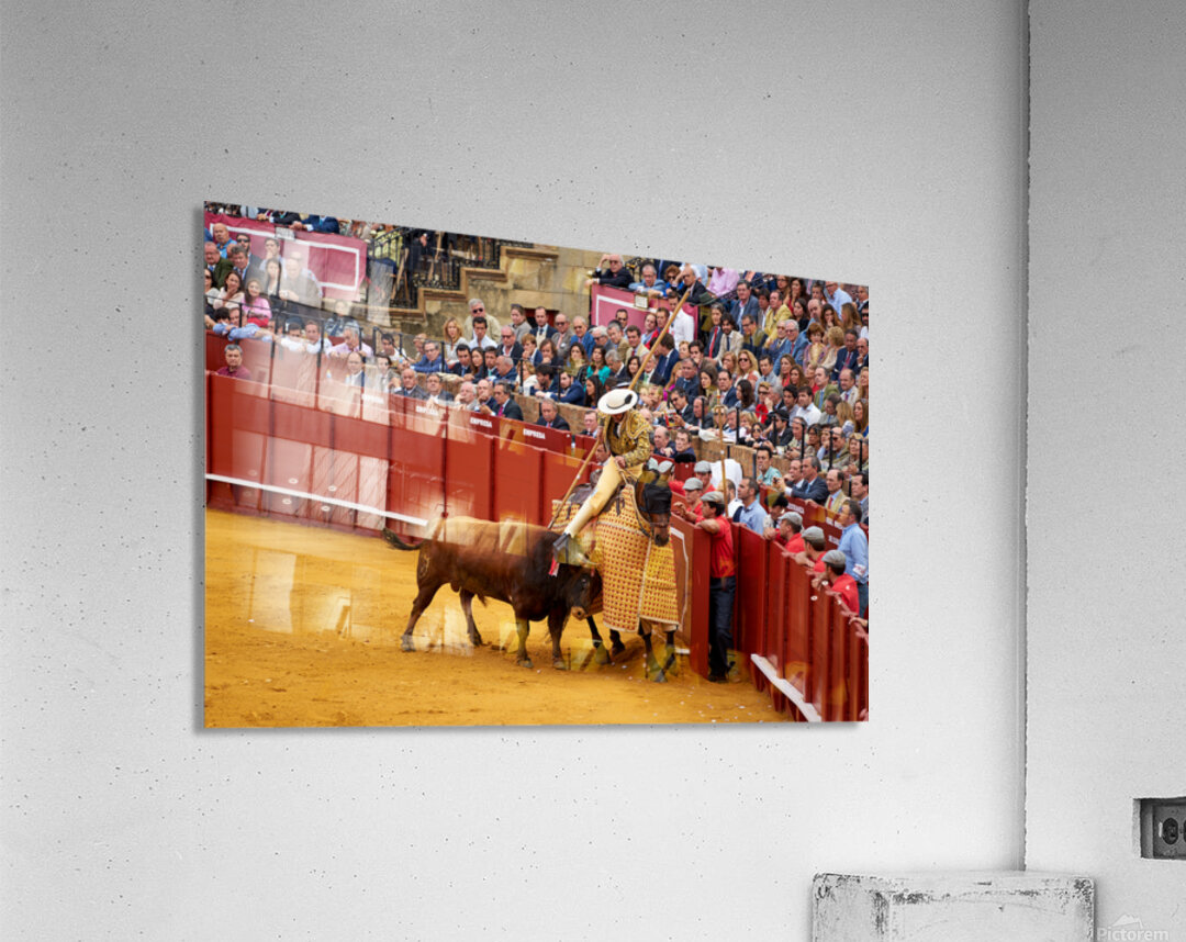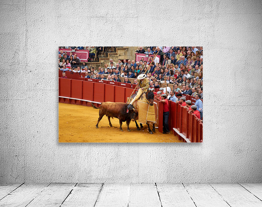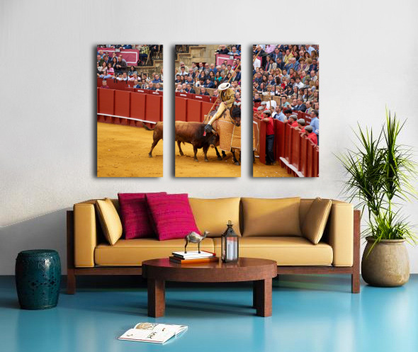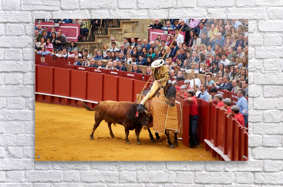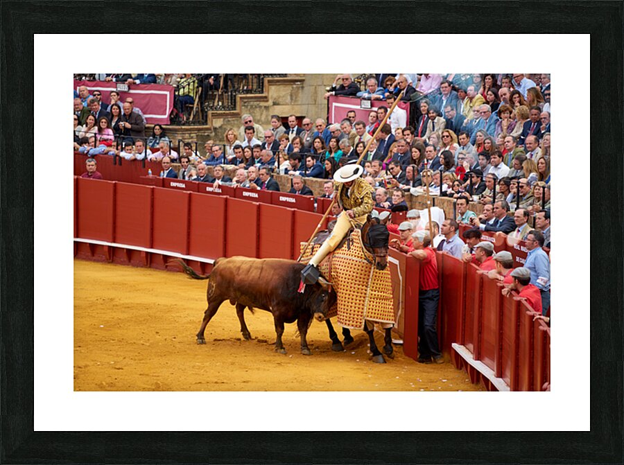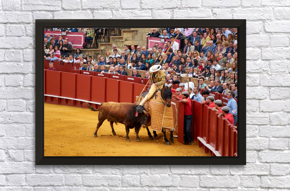 "Bullfight event in Seville Arena takes center stage in Andalucia" in a framed print.