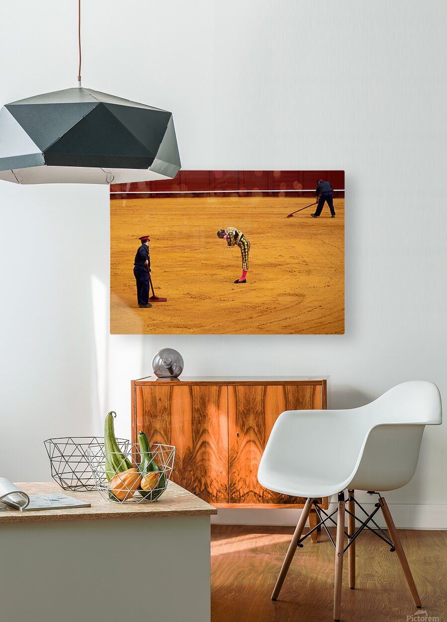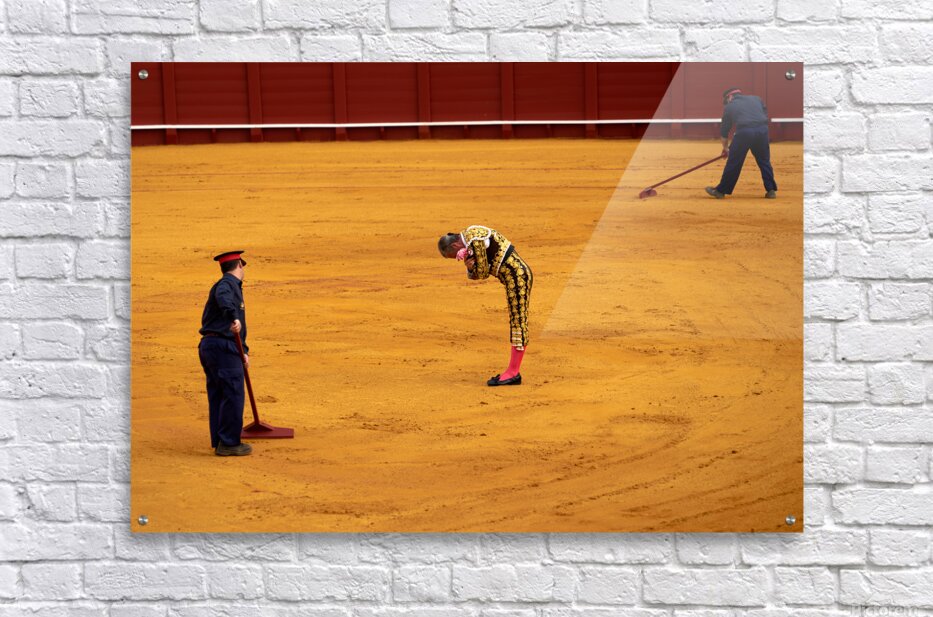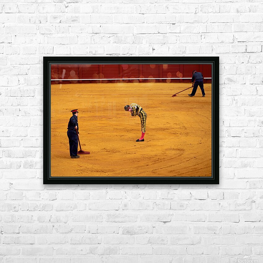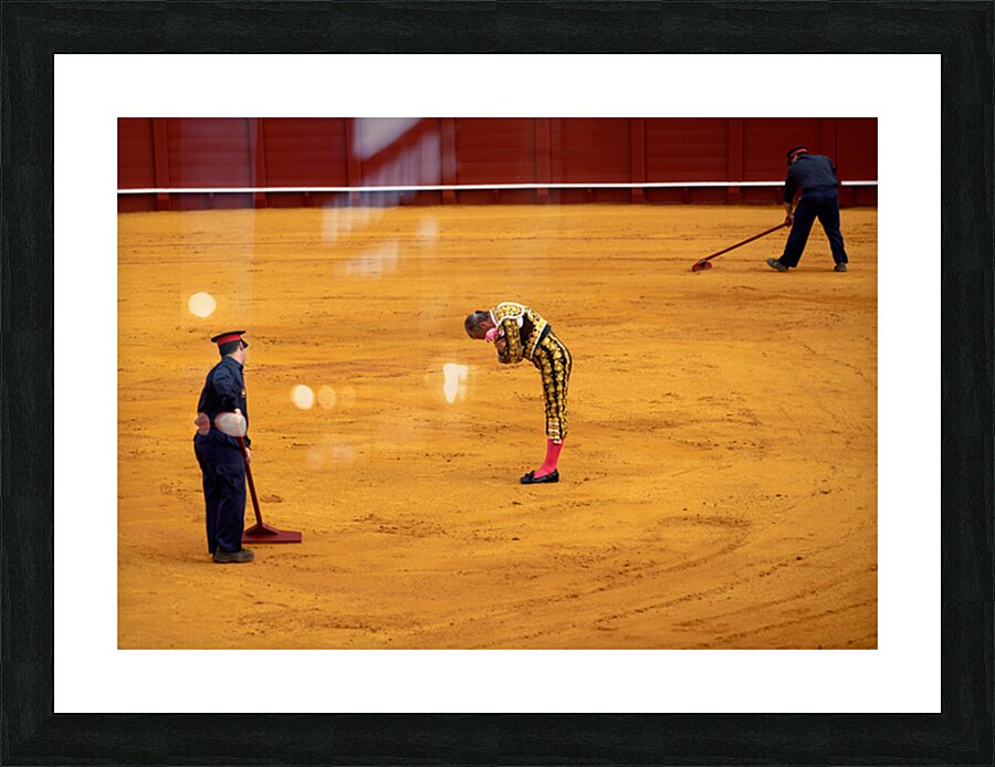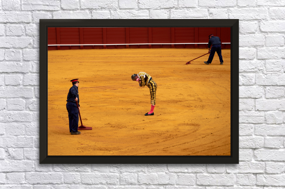 "Bullfight in Seville Arena captures tradition and skill" in a framed print.