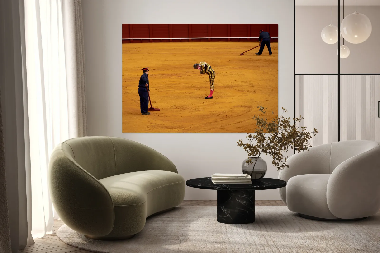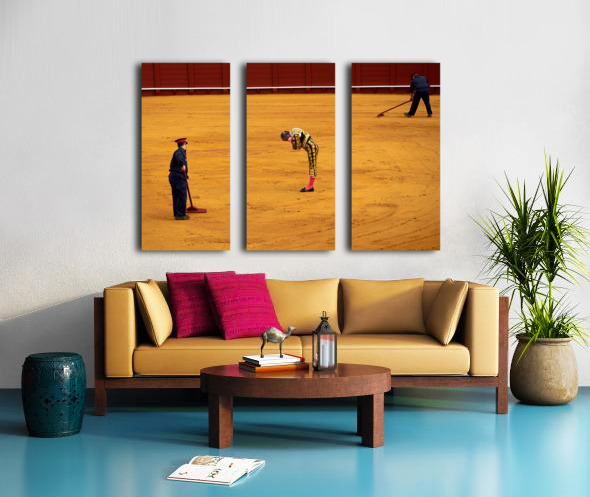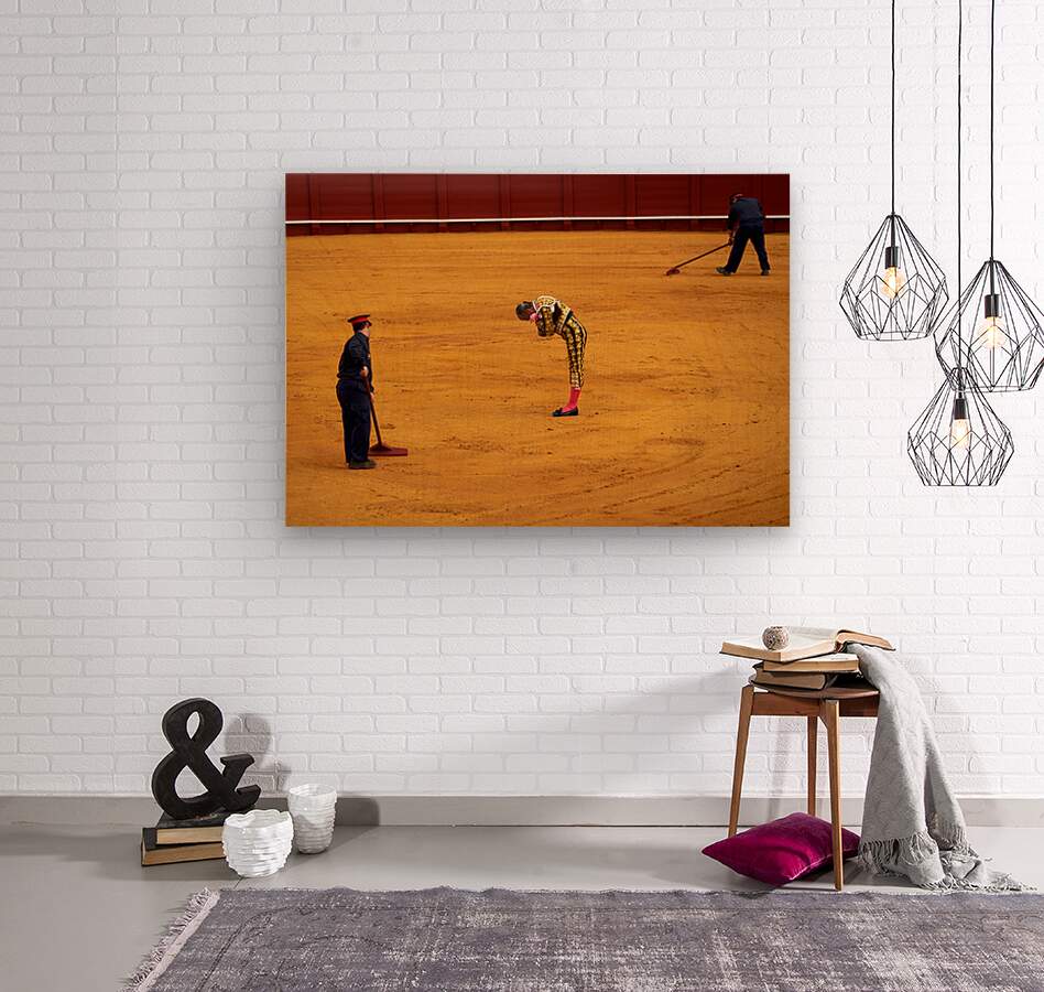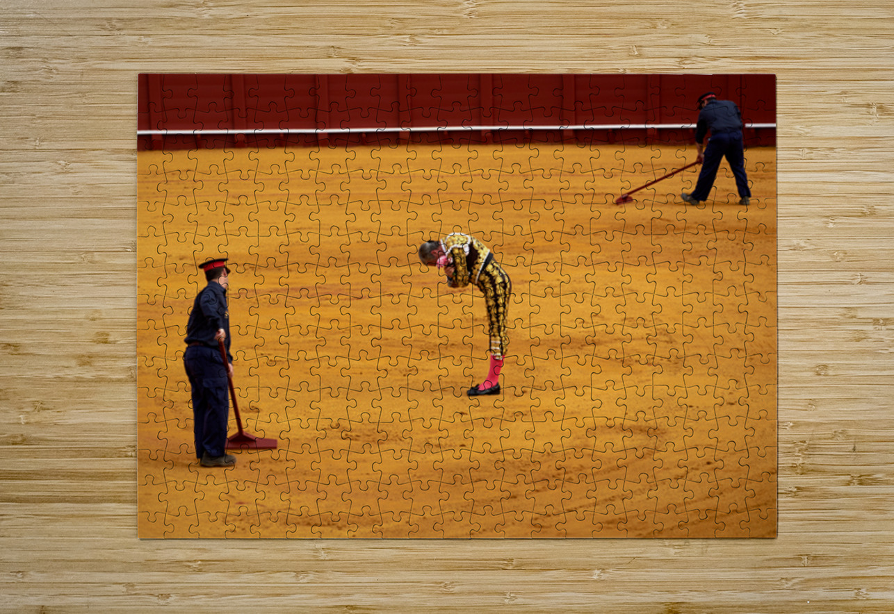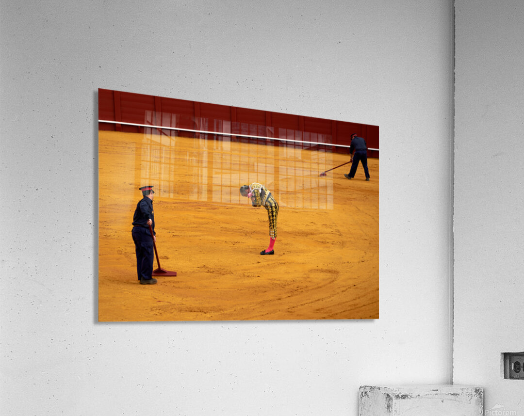 "Bullfight in Seville Arena captures tradition and skill" in a framed print.