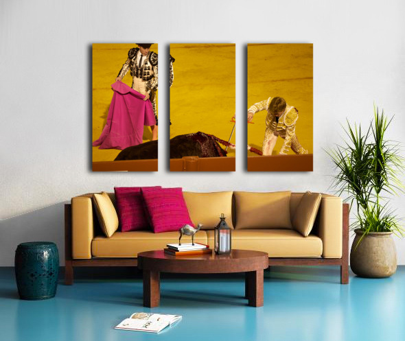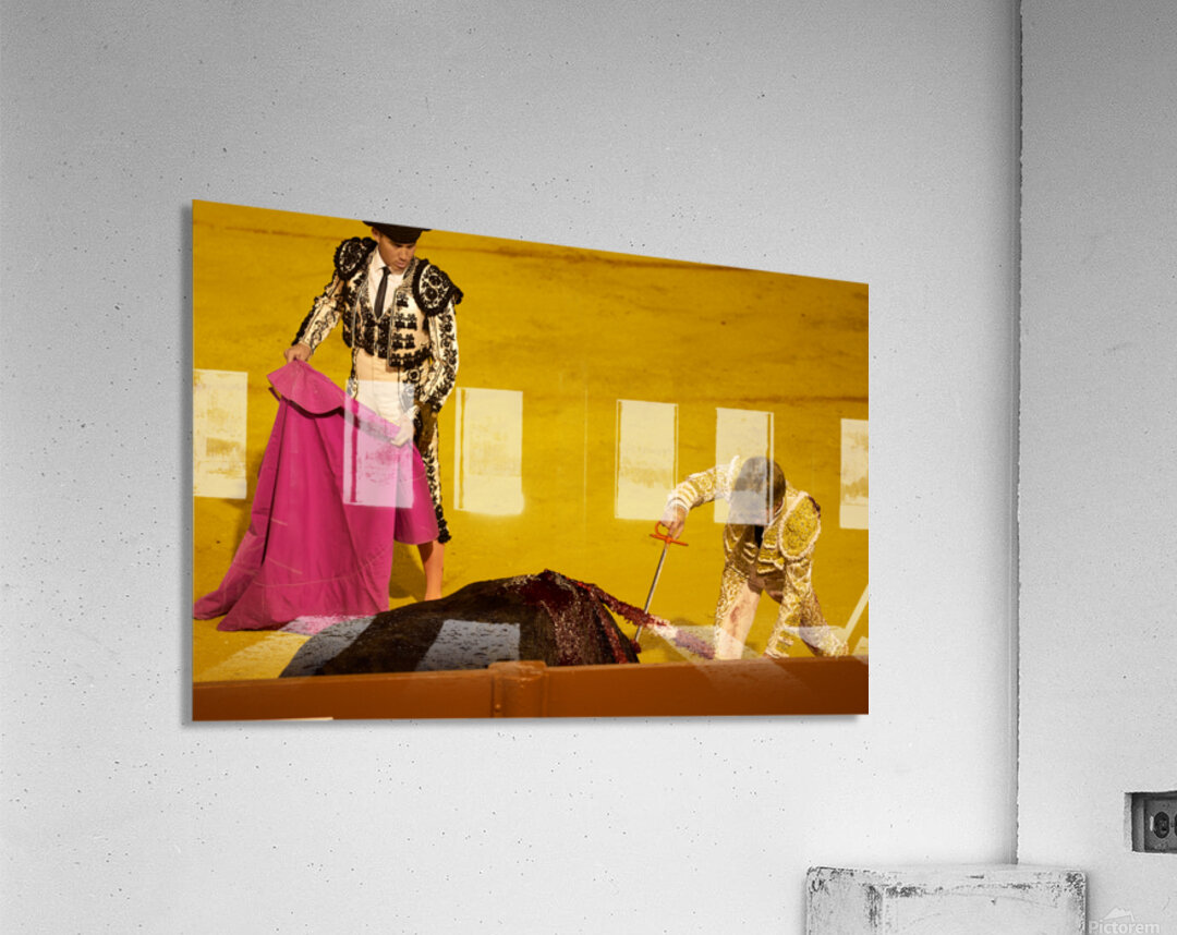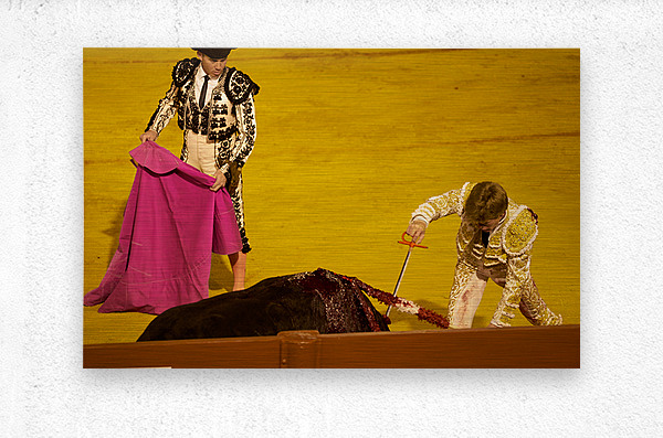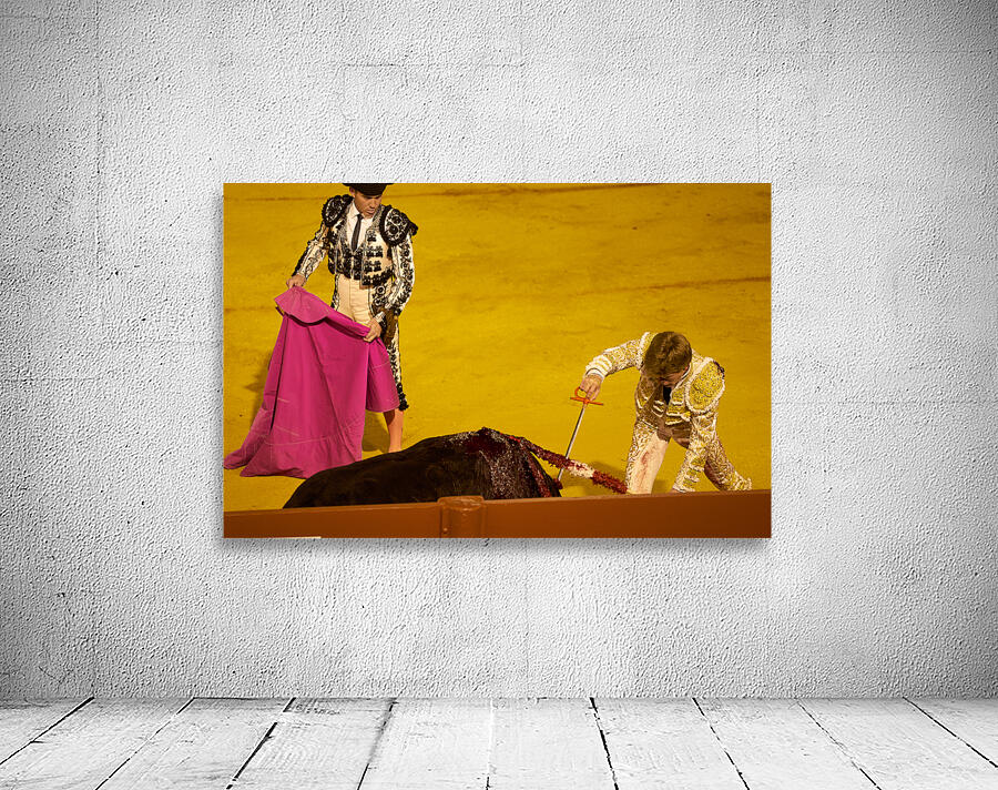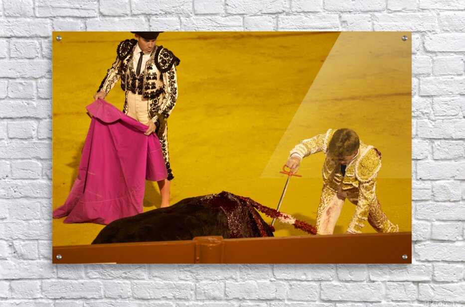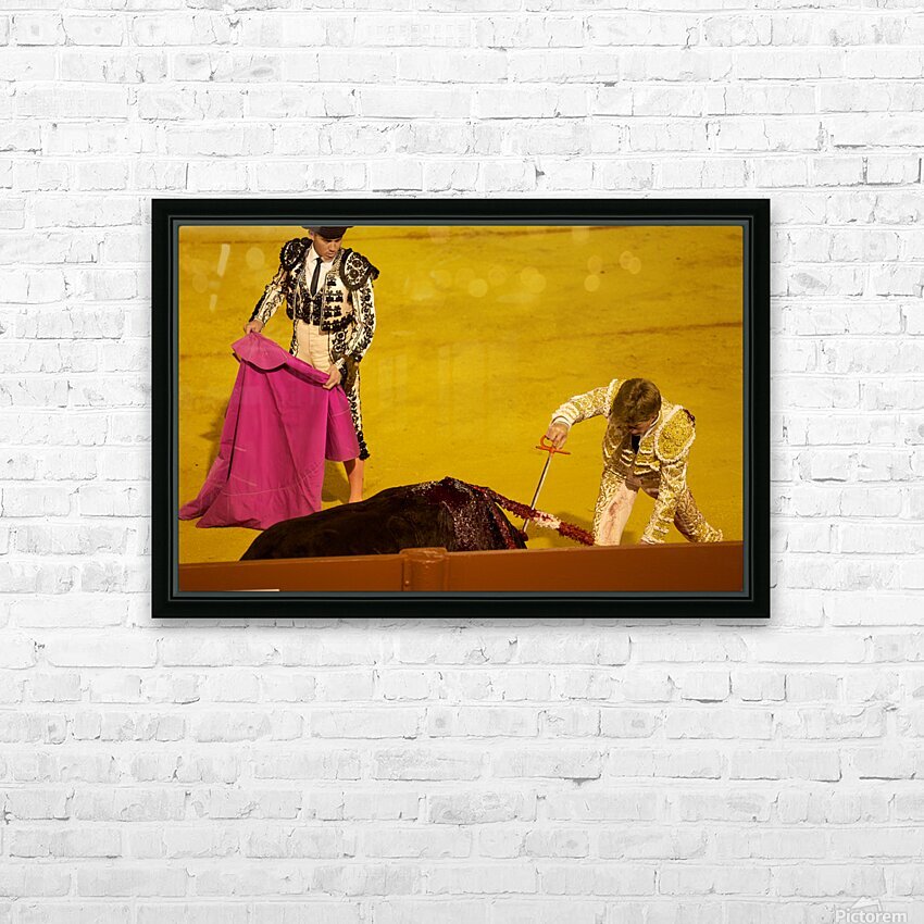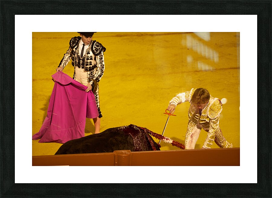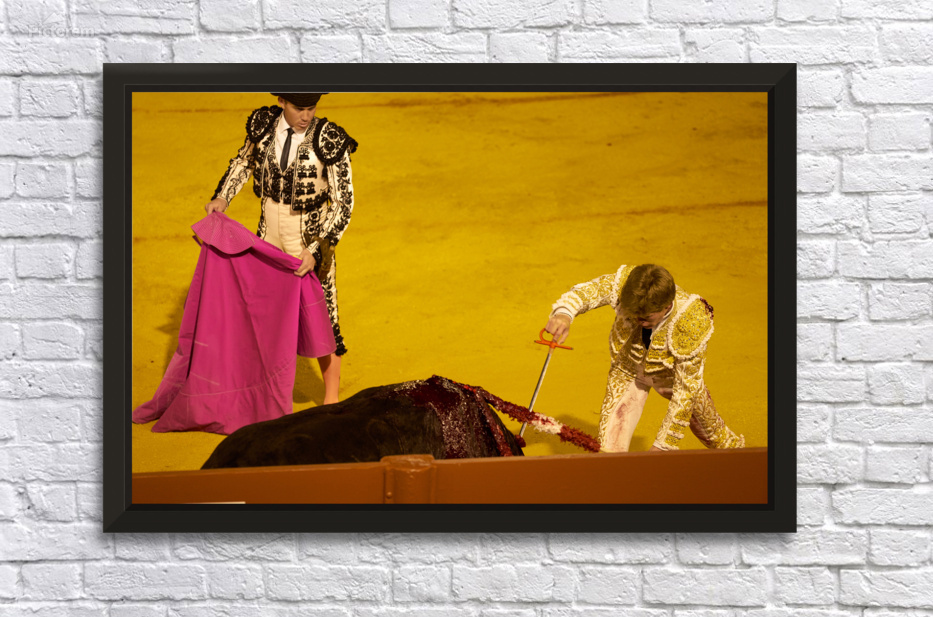 "Bullfight event in Seville Arena during daytime hours" in a framed print.