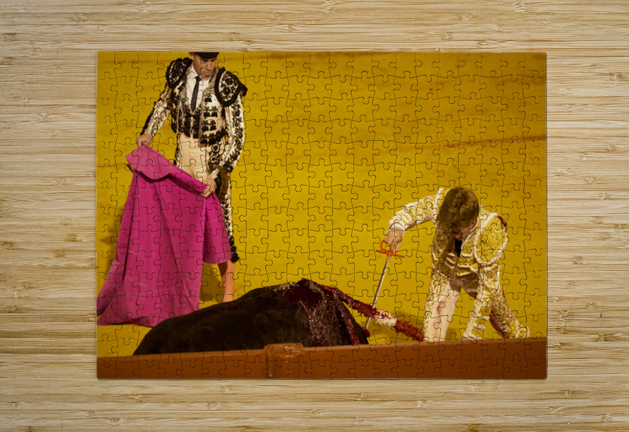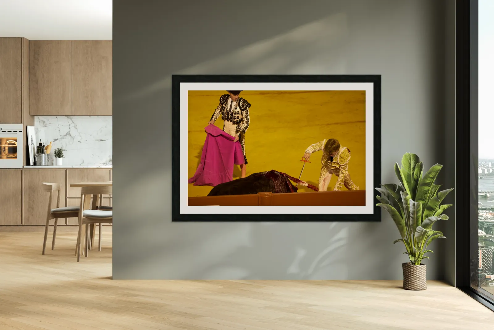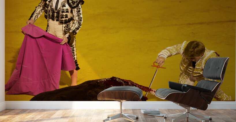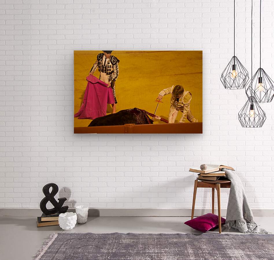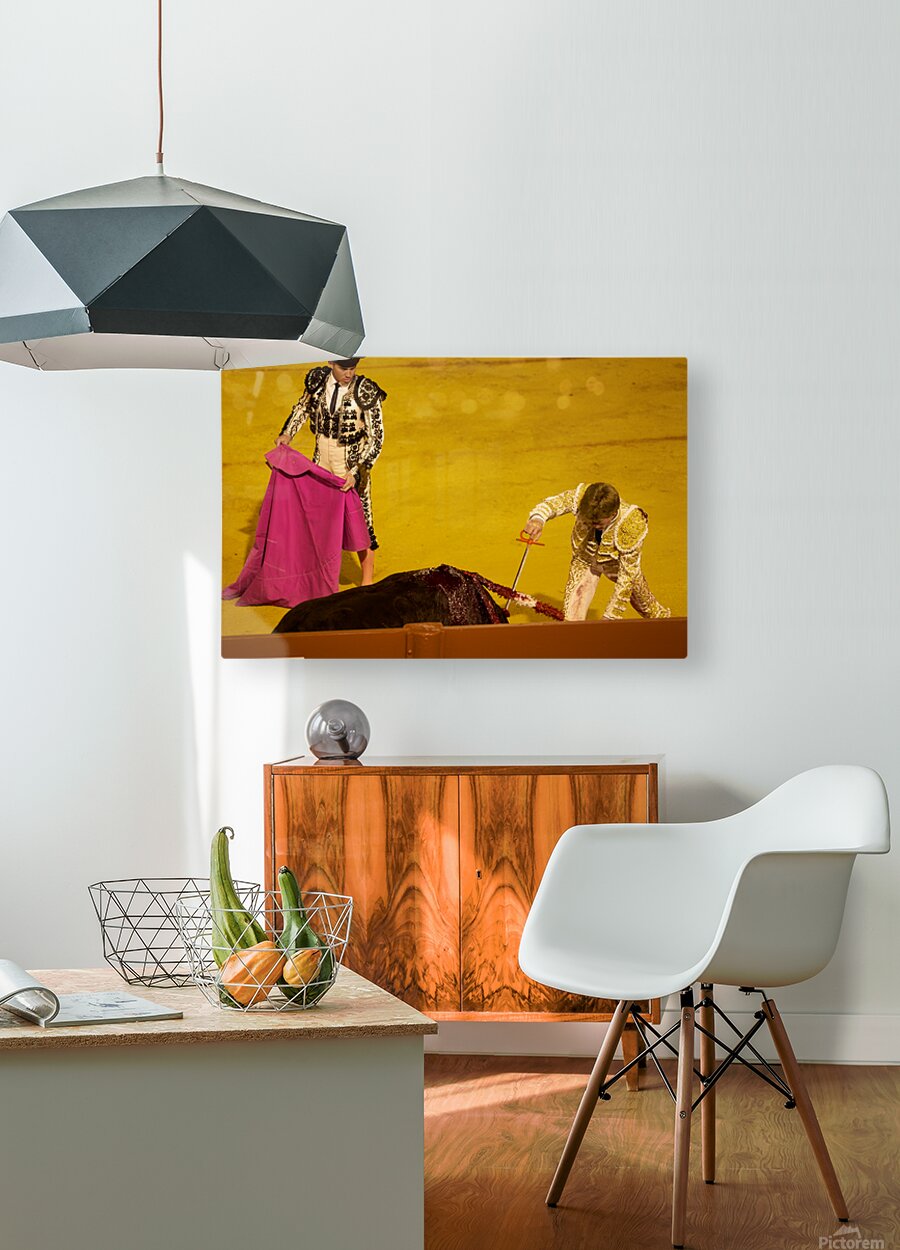 "Bullfight event in Seville Arena during daytime hours" in a framed print.