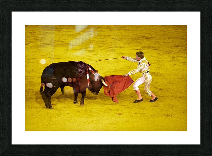 A bullfighter performs during a bullfight in Seville Arena in Andalusia Spain showcasing traditional skills and techniques of this cultural event.