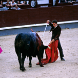 Bullfighters perform a traditional corrida de rejones in Las Ventas Bullring during a lively event in Madrid Spain.