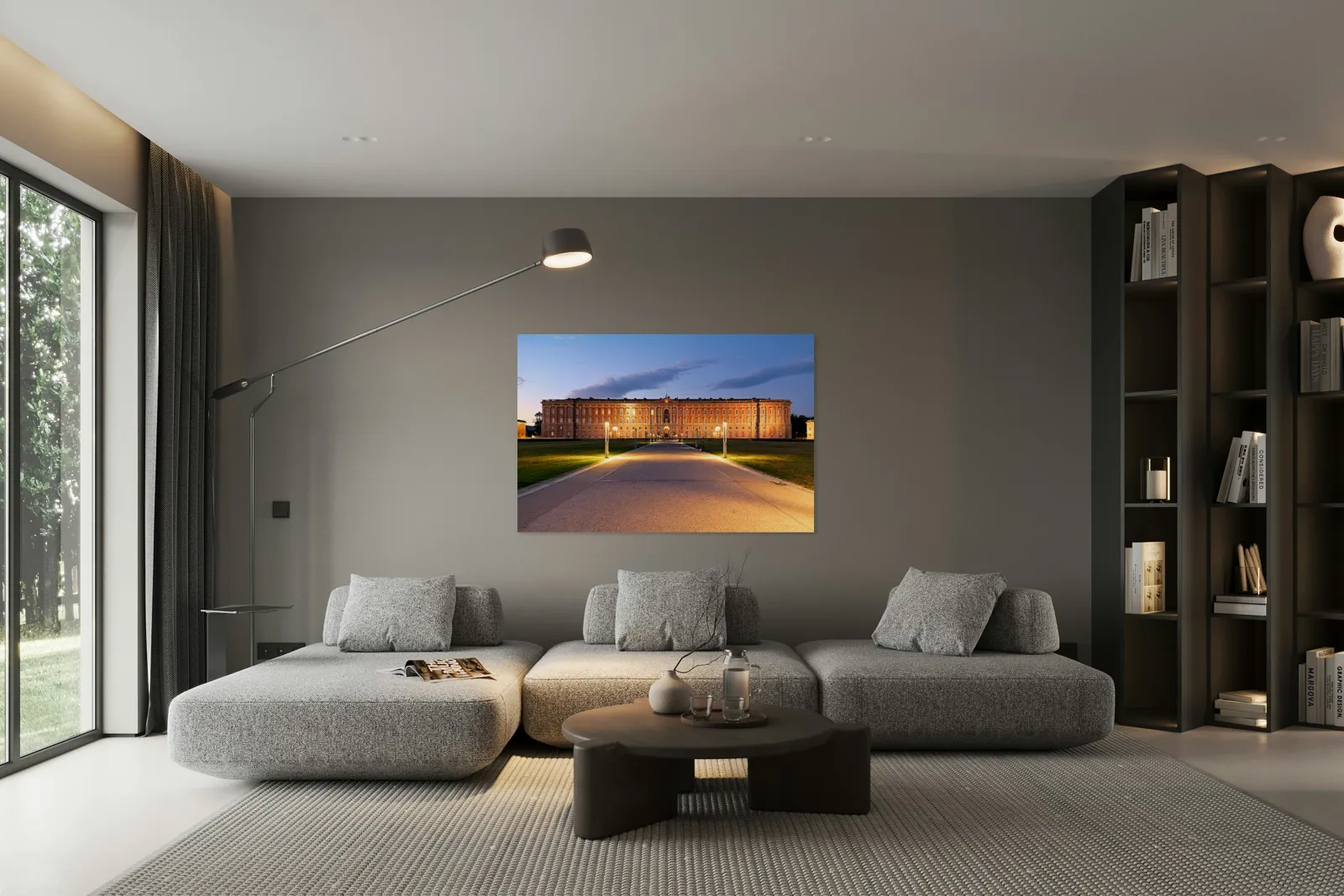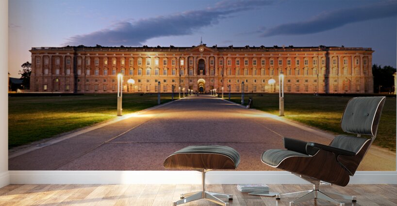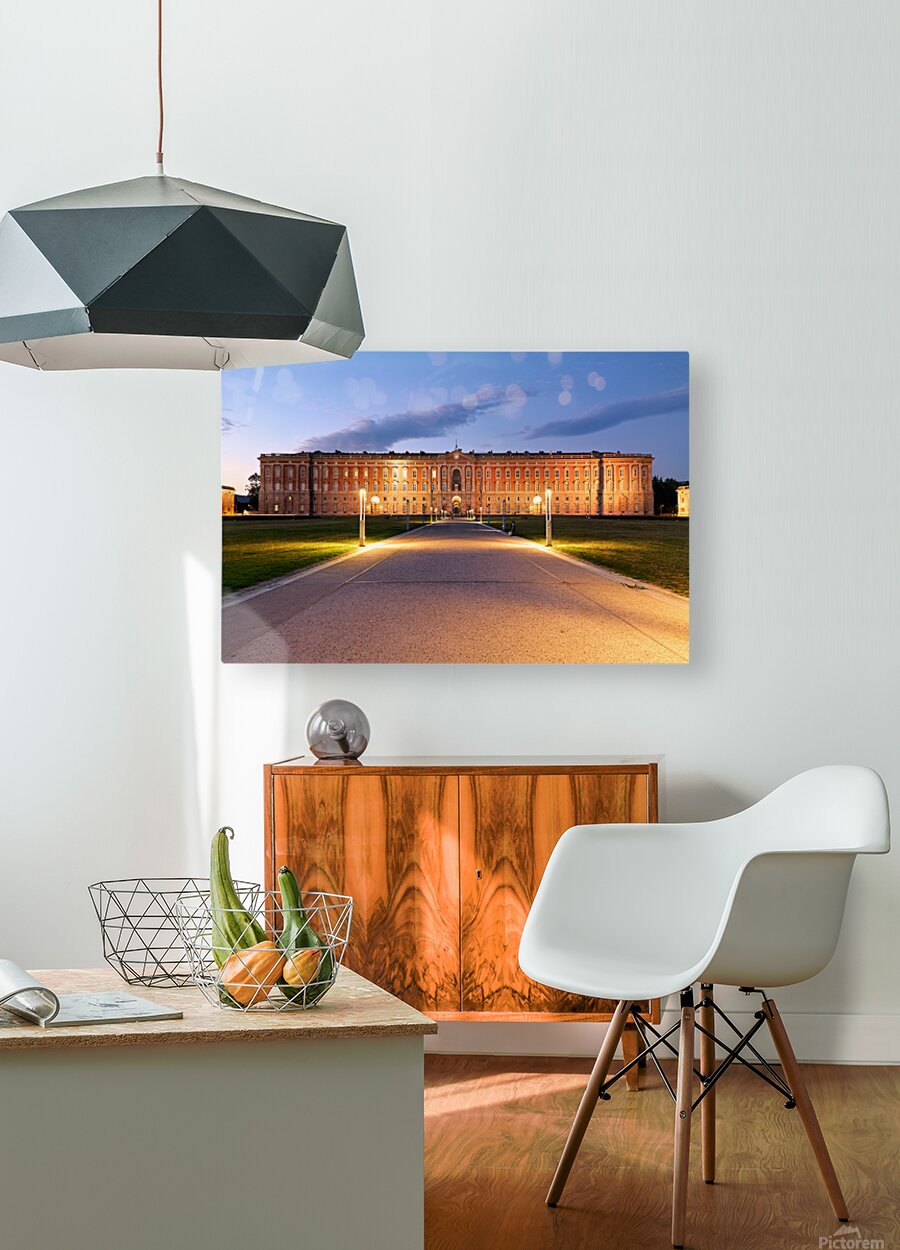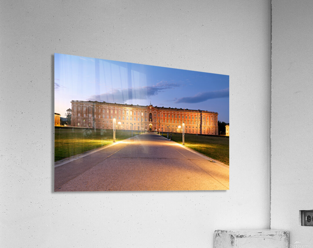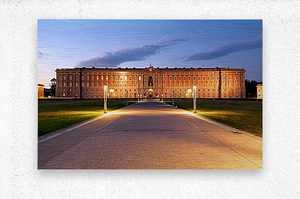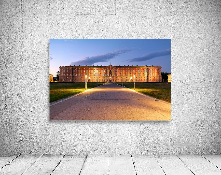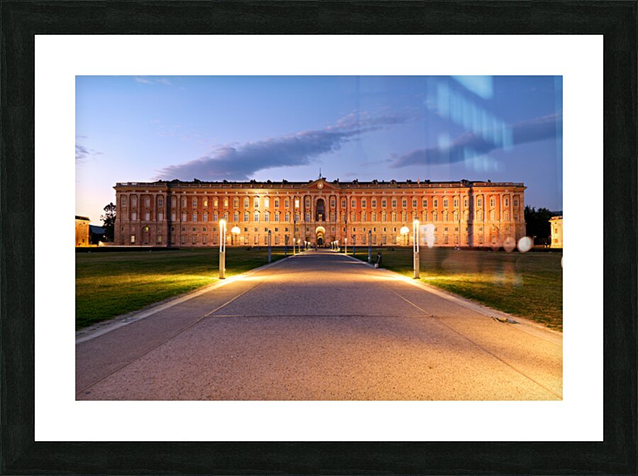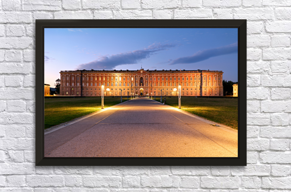 "Explore the Royal Palace at Caserta in evening light" in a framed print.