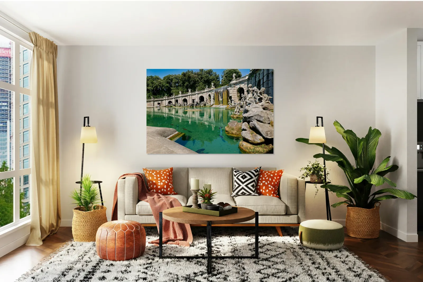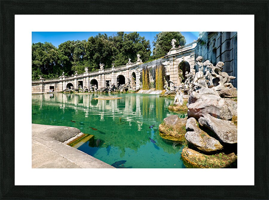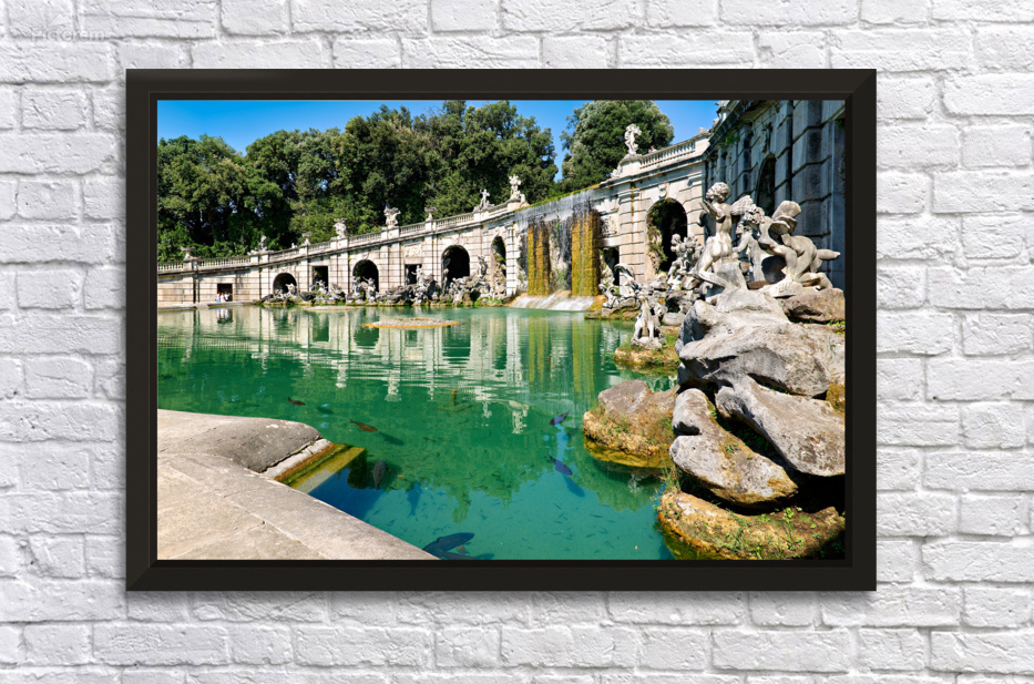 "Fountain of aeolus in the royal palace of caserta italy" in a framed print.