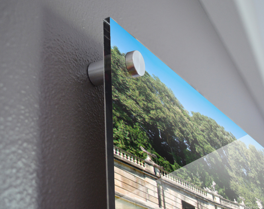 Printed to the edge - Ready to hang - provided with 4 premium polished aluminum stand off ( wall screws and mounting hardware provided )