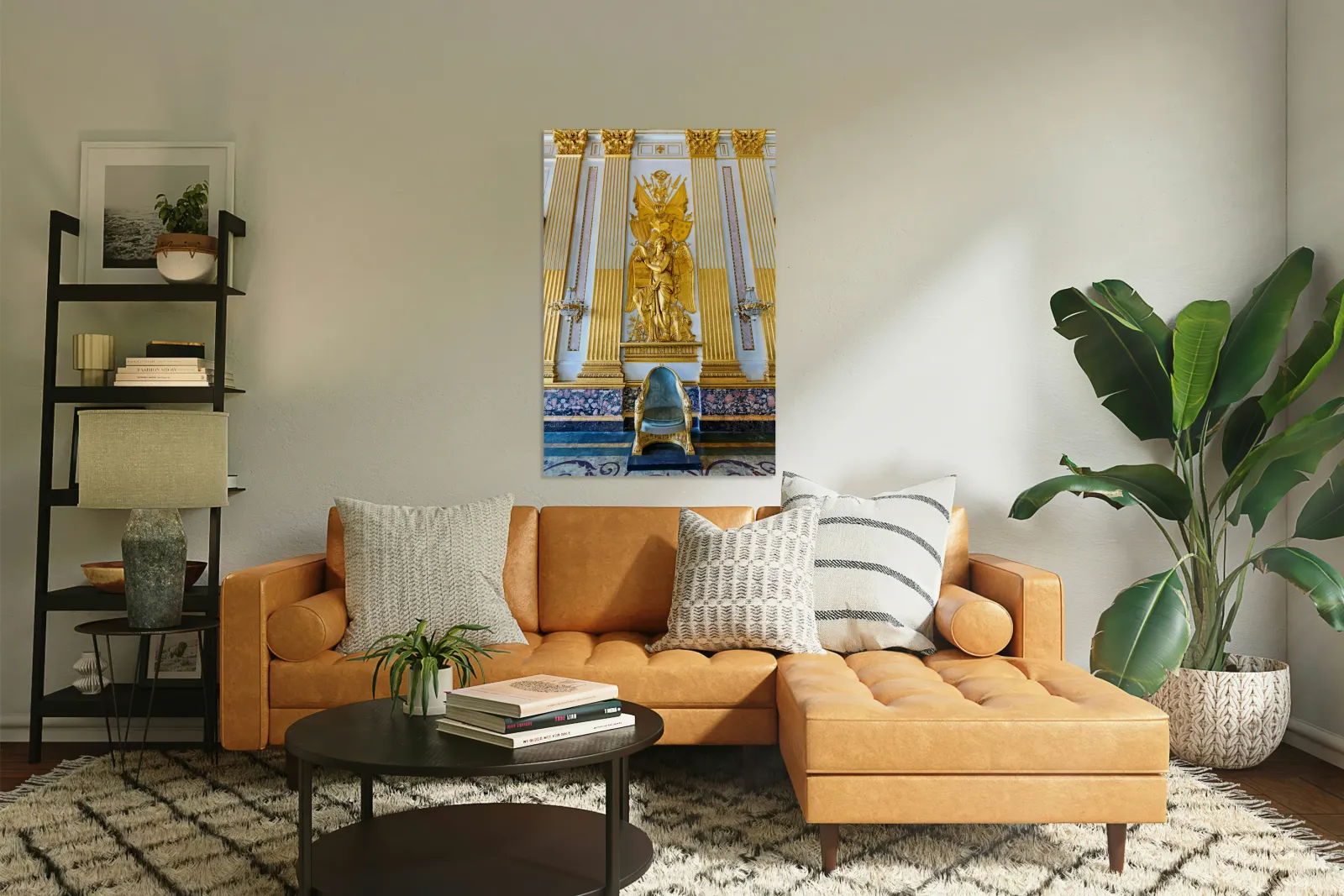 Visitors explore the Hall of Astrea in the Royal Palace of Caserta admiring the golden decorations and grand architecture.