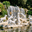 Water flows from a waterfall behind a statue of Diana and Actaeon surrounded by dogs. This is at the Royal Palace in Caserta.