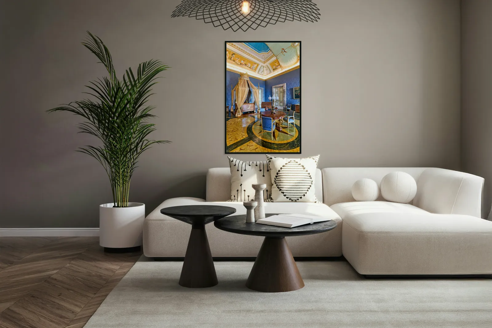 Printed to the edge & Ready to hang. With a floating frame on the back and hanging wire