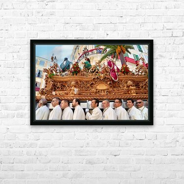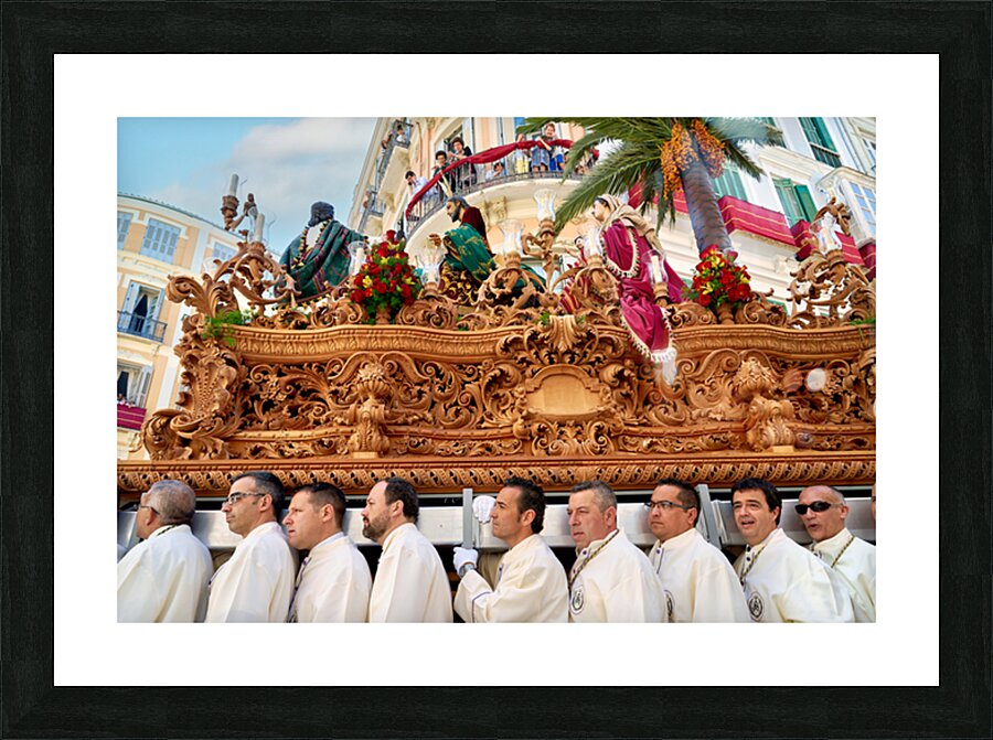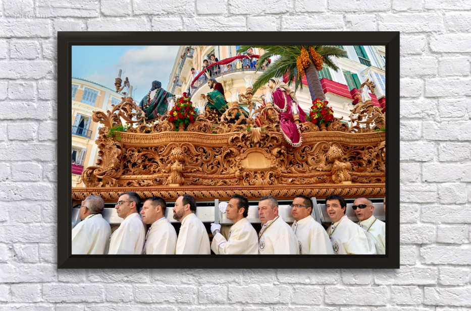 "Processions during Easter Holy Week in Malaga Spain" in a framed print.