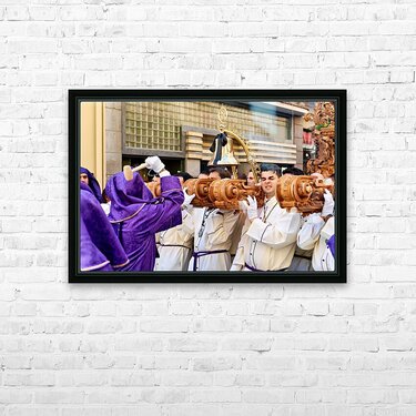 "Easter Holy Week processions in Malaga Spain" in a framed print.