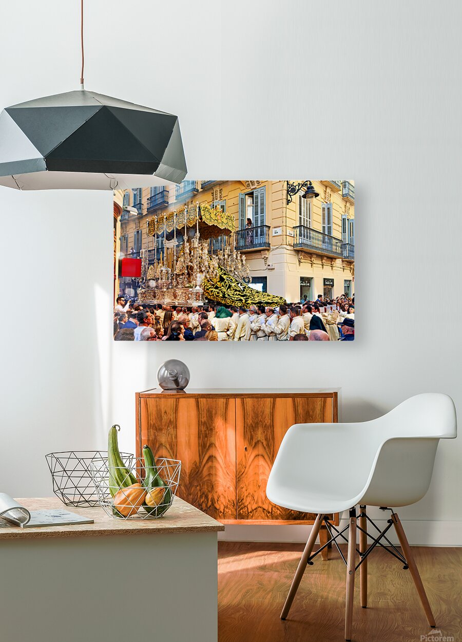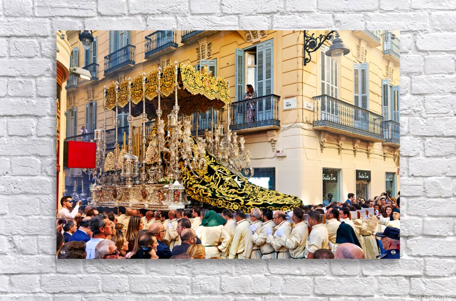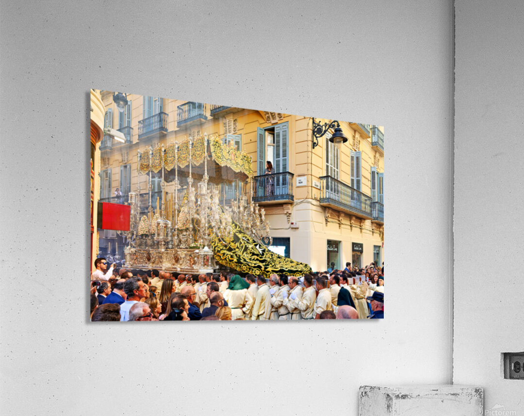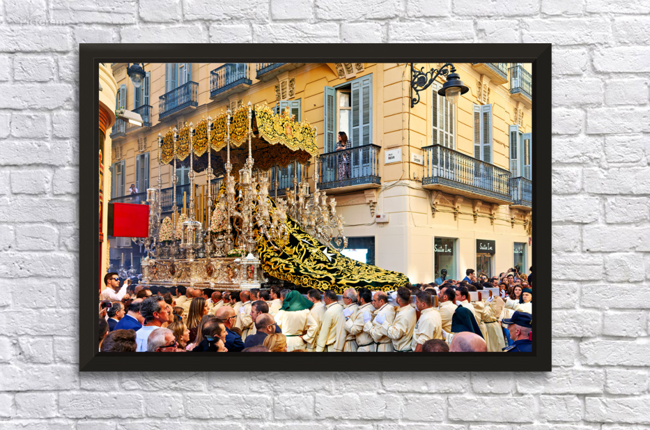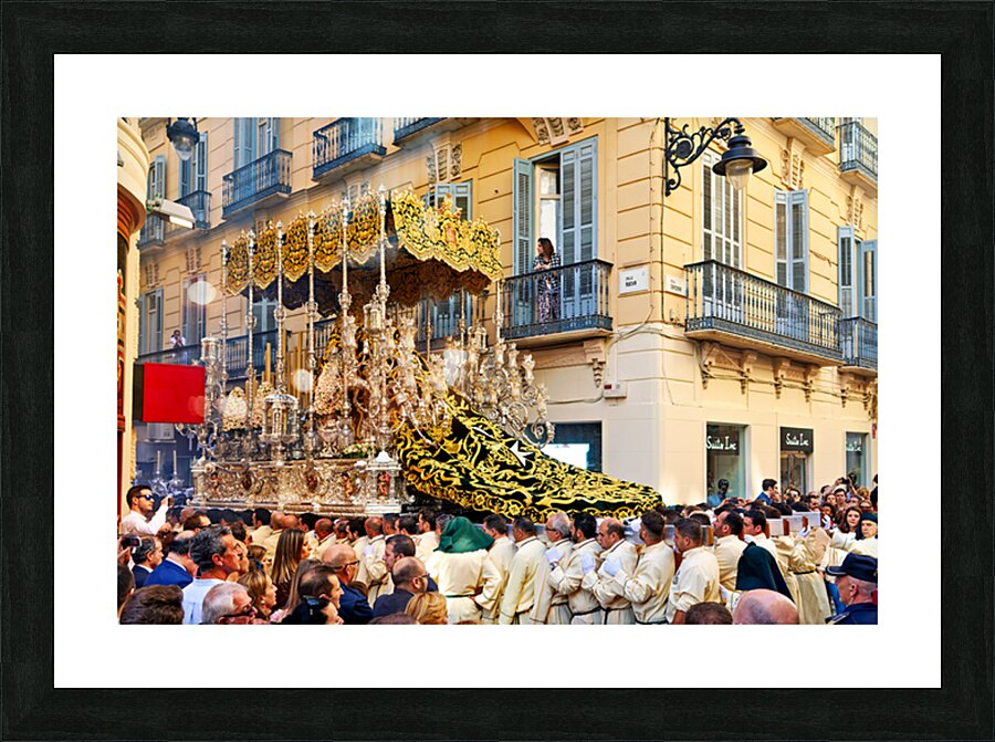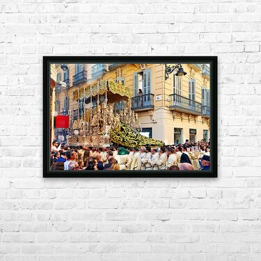 "Procession in Malaga during Holy Week celebrations" in a framed print.