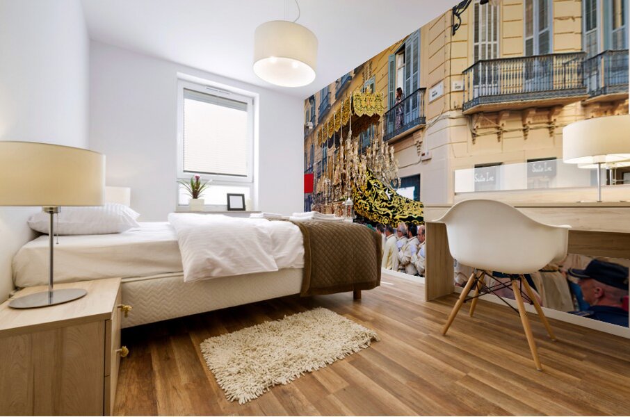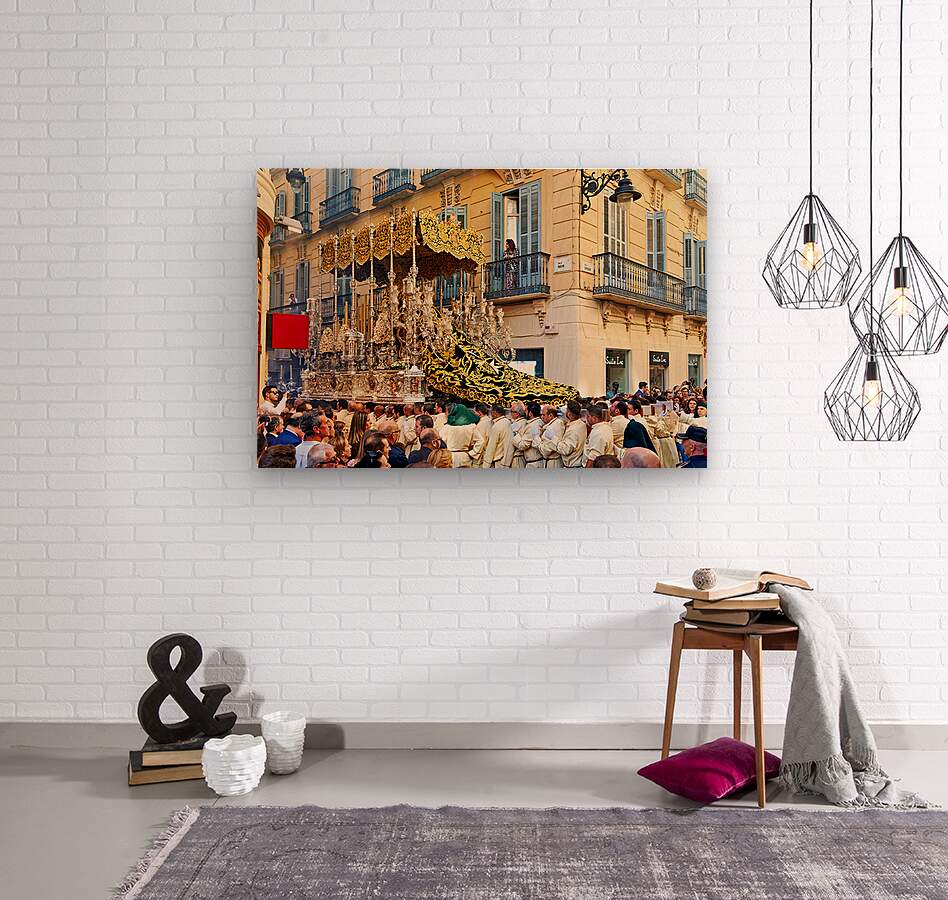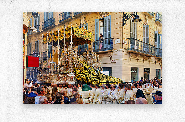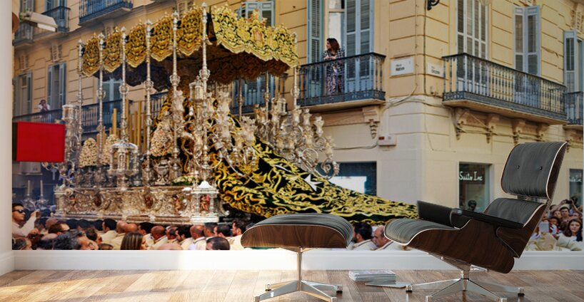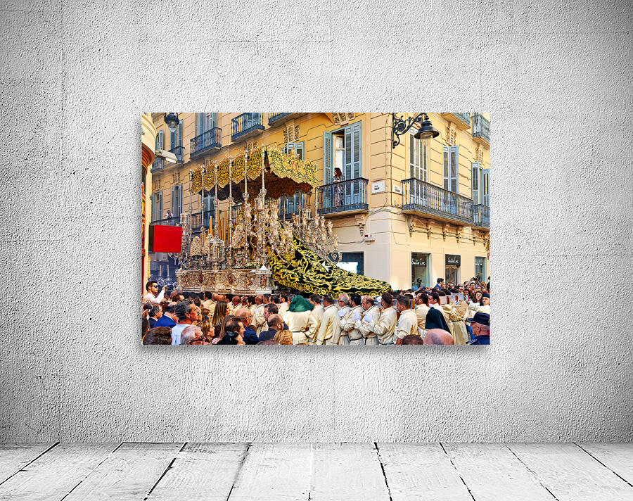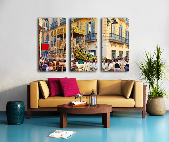 "Procession in Malaga during Holy Week celebrations" in a framed print.