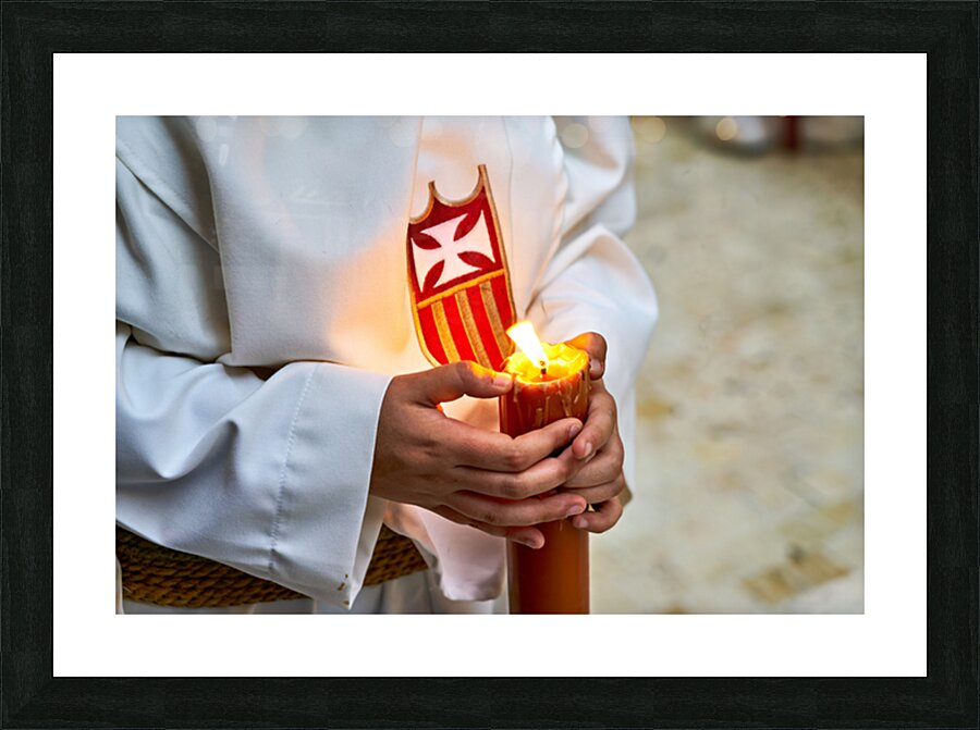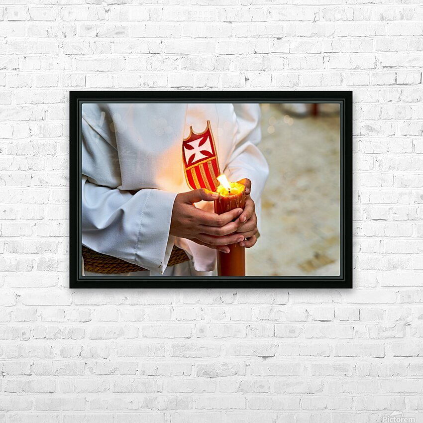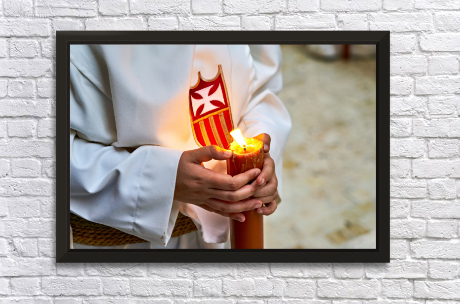 "Procession in malaga for holy week in andalusia" in a framed print.
