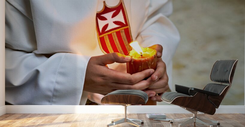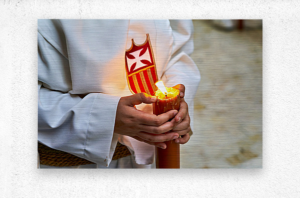 People carry candles during a procession in Malaga. This event takes place during Holy Week celebrations in Andalusia Spain.