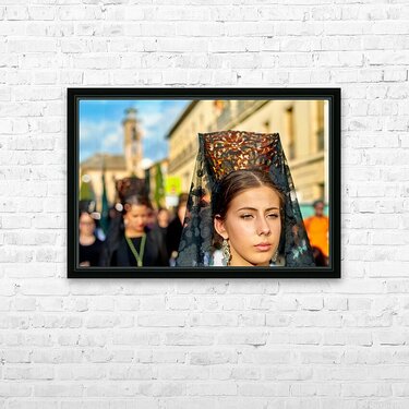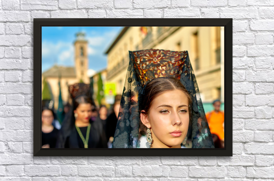 "Processions during Easter Holy Week in Granada Spain" in a framed print.
