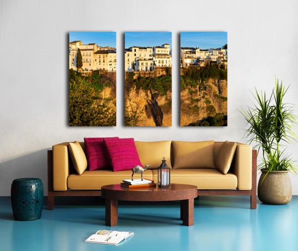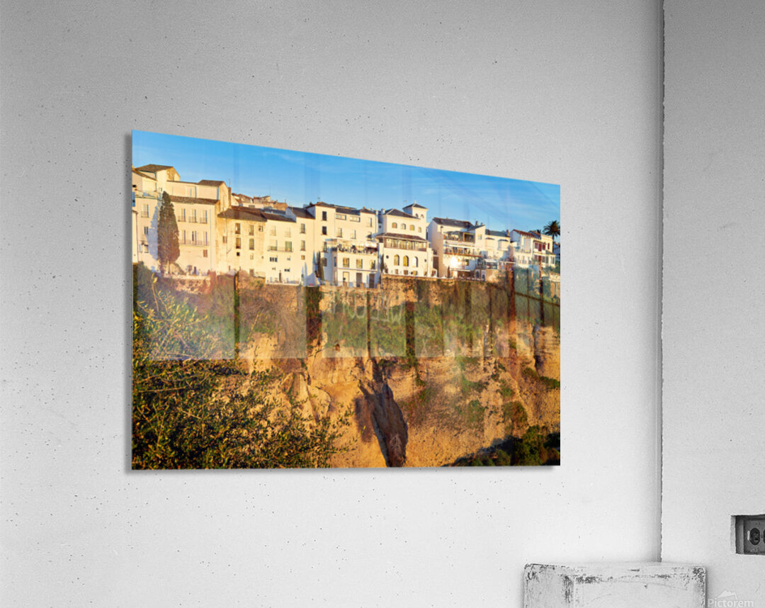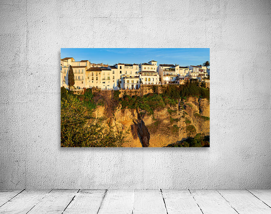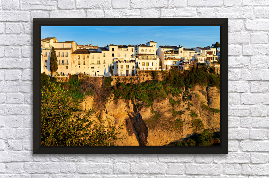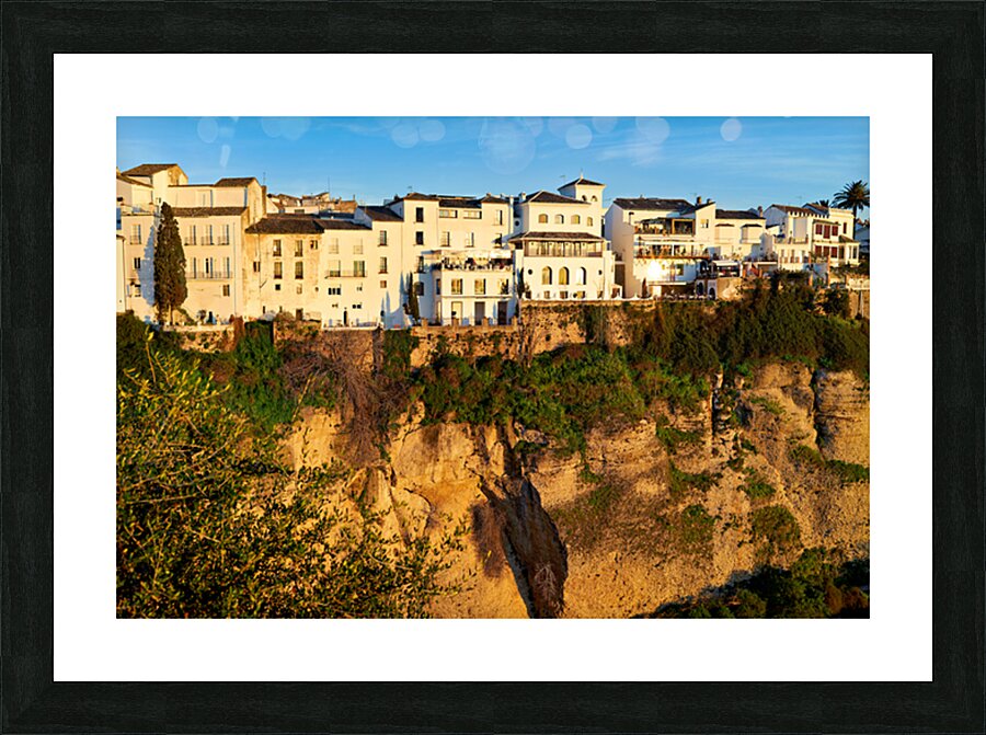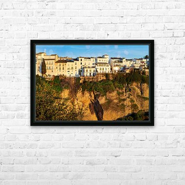 "View of Ronda on the edge of El Tajo gorge in Andalusia" in a framed print.