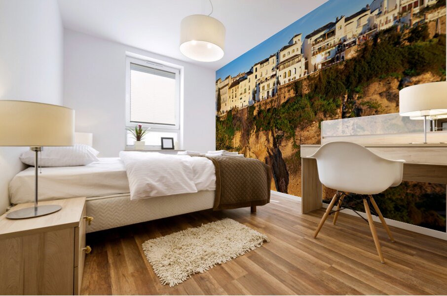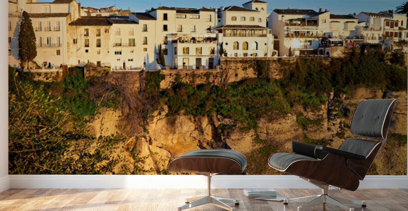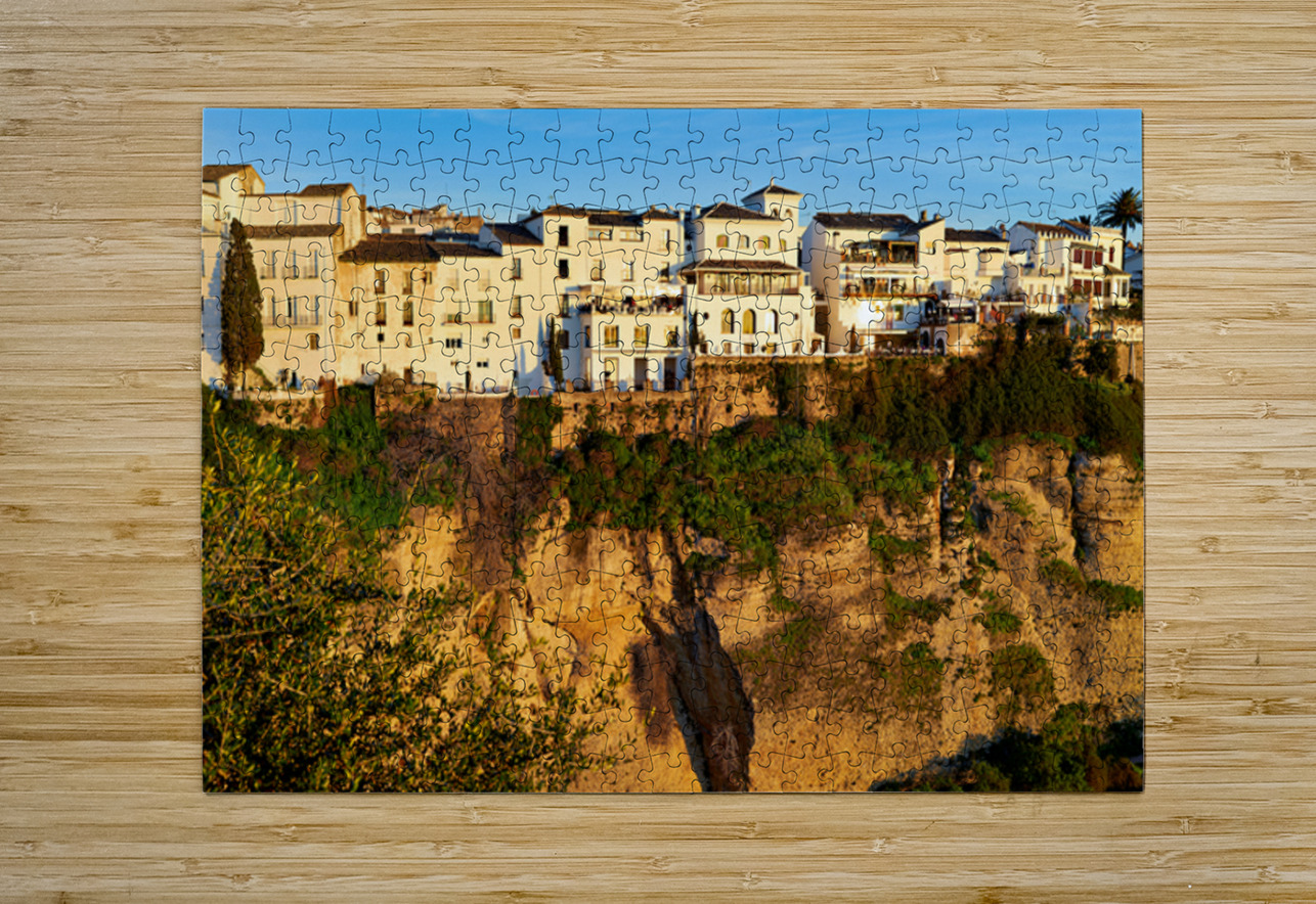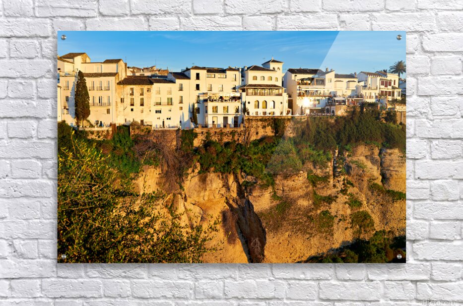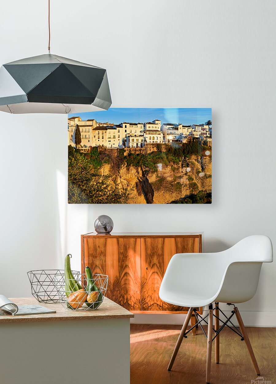 "View of Ronda on the edge of El Tajo gorge in Andalusia" in a framed print.