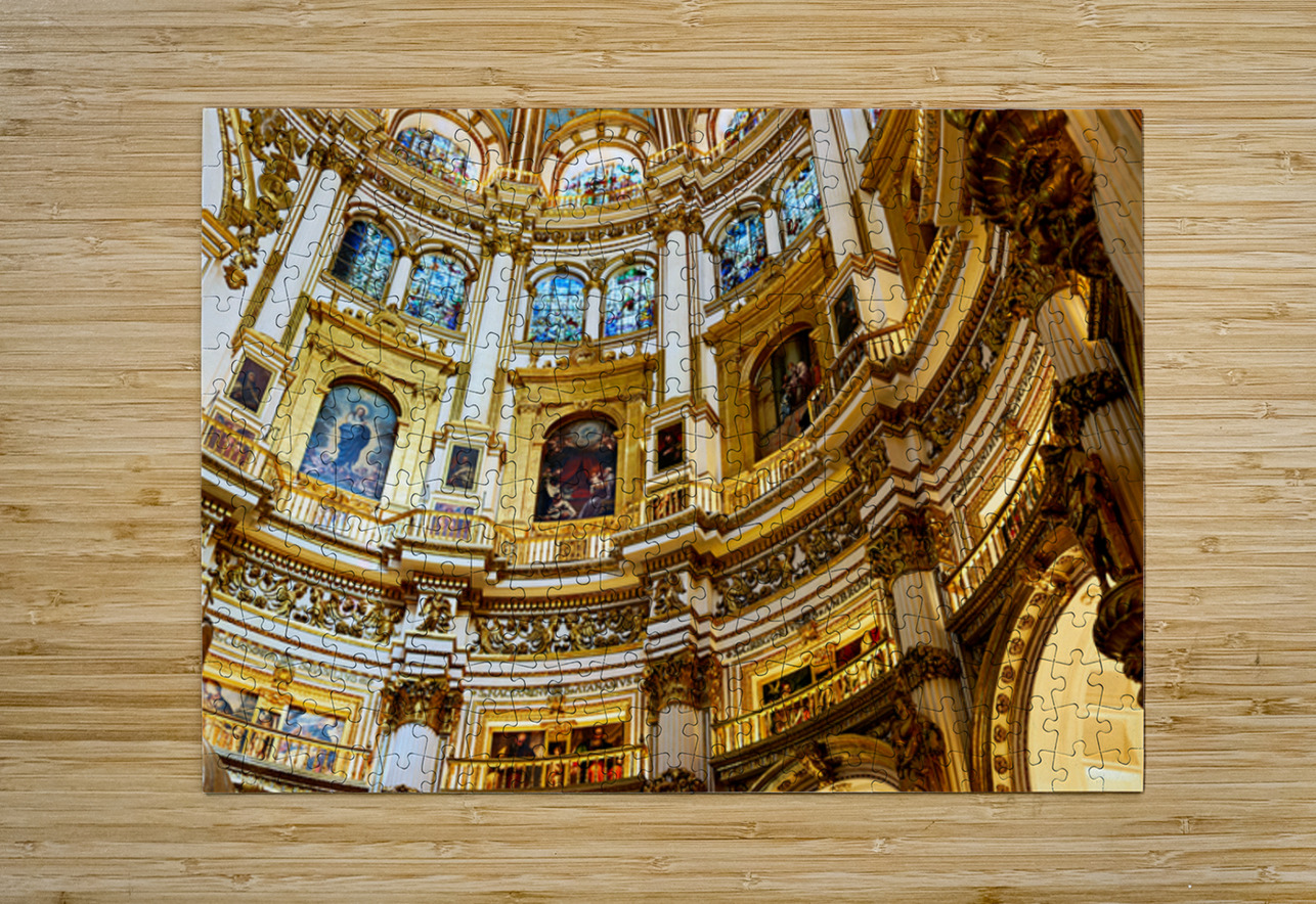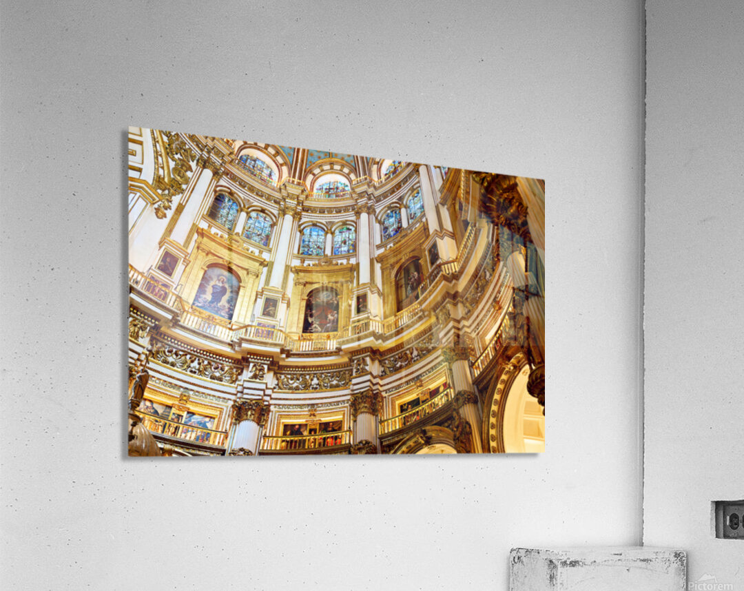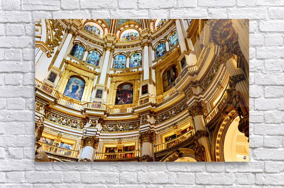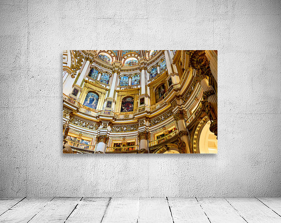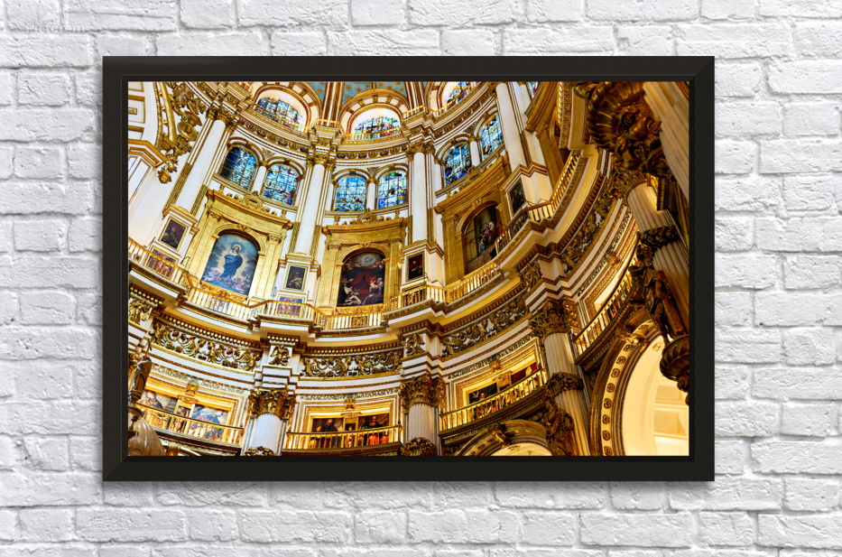 "Exploring the grand interior of Granada Cathedral" in a framed print.