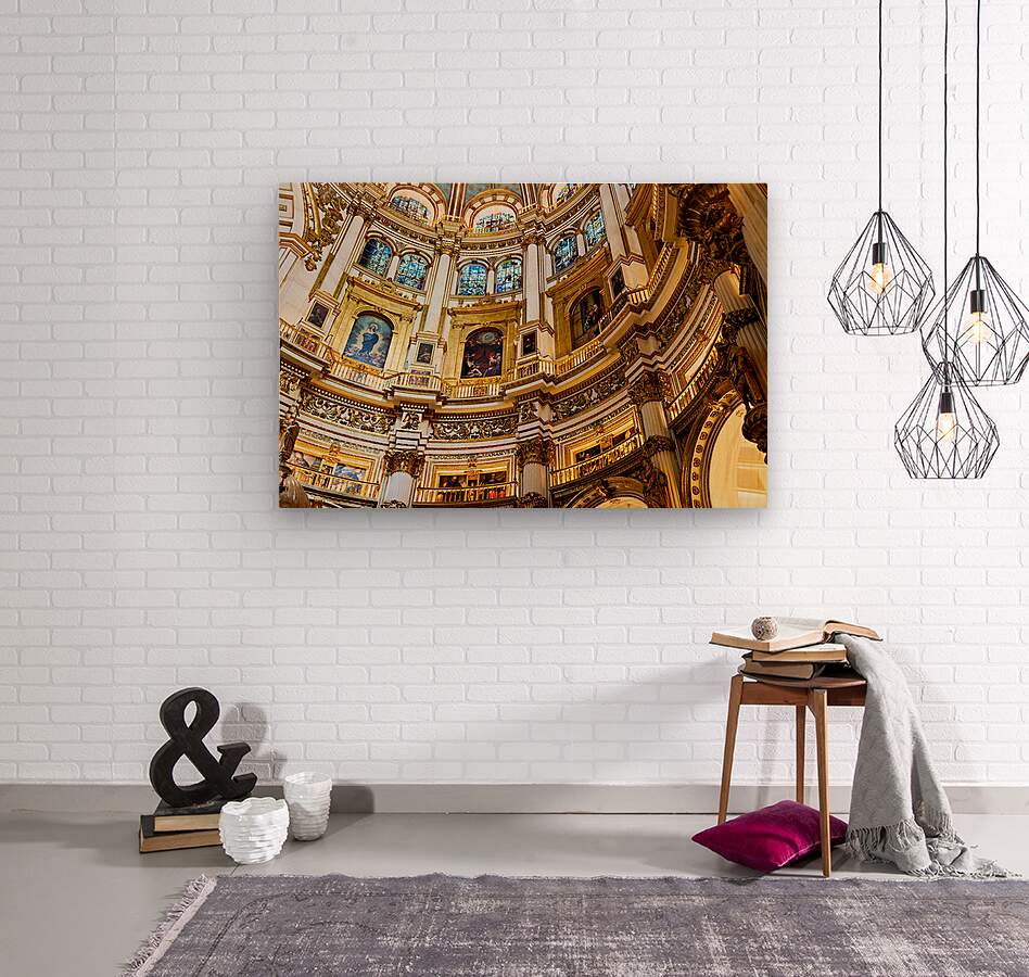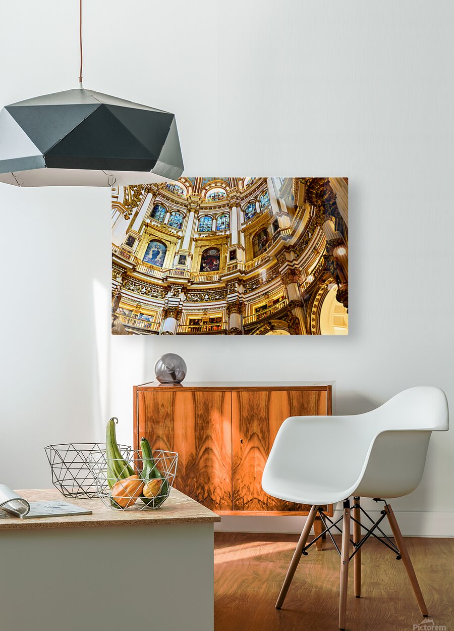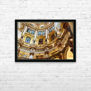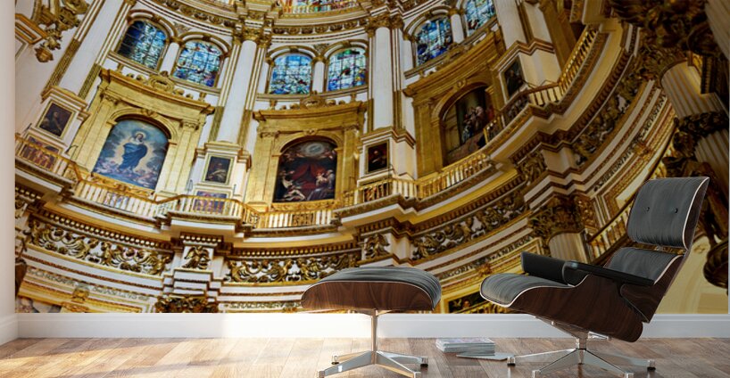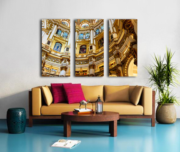 "Exploring the grand interior of Granada Cathedral" in a framed print.