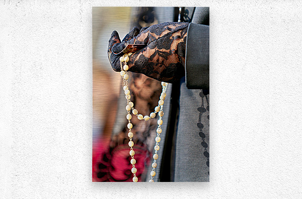 People take part in processions during Holy Week in Granada. Participants hold rosaries while walking through the streets.