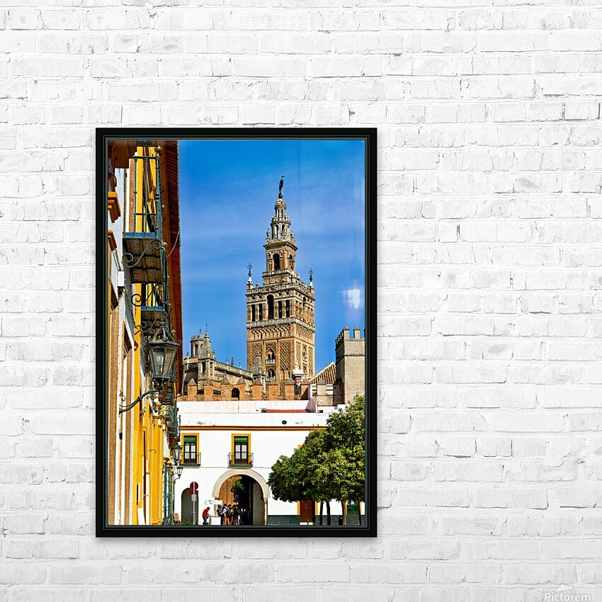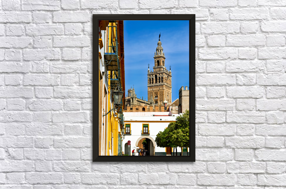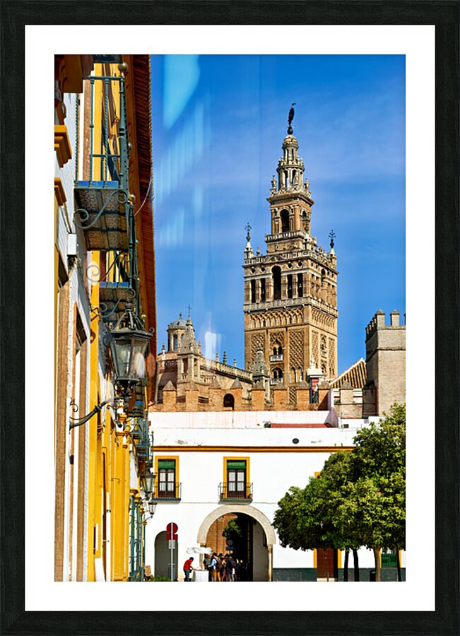 "Visit to la giralda cathedral in seville spain" in a framed print.
