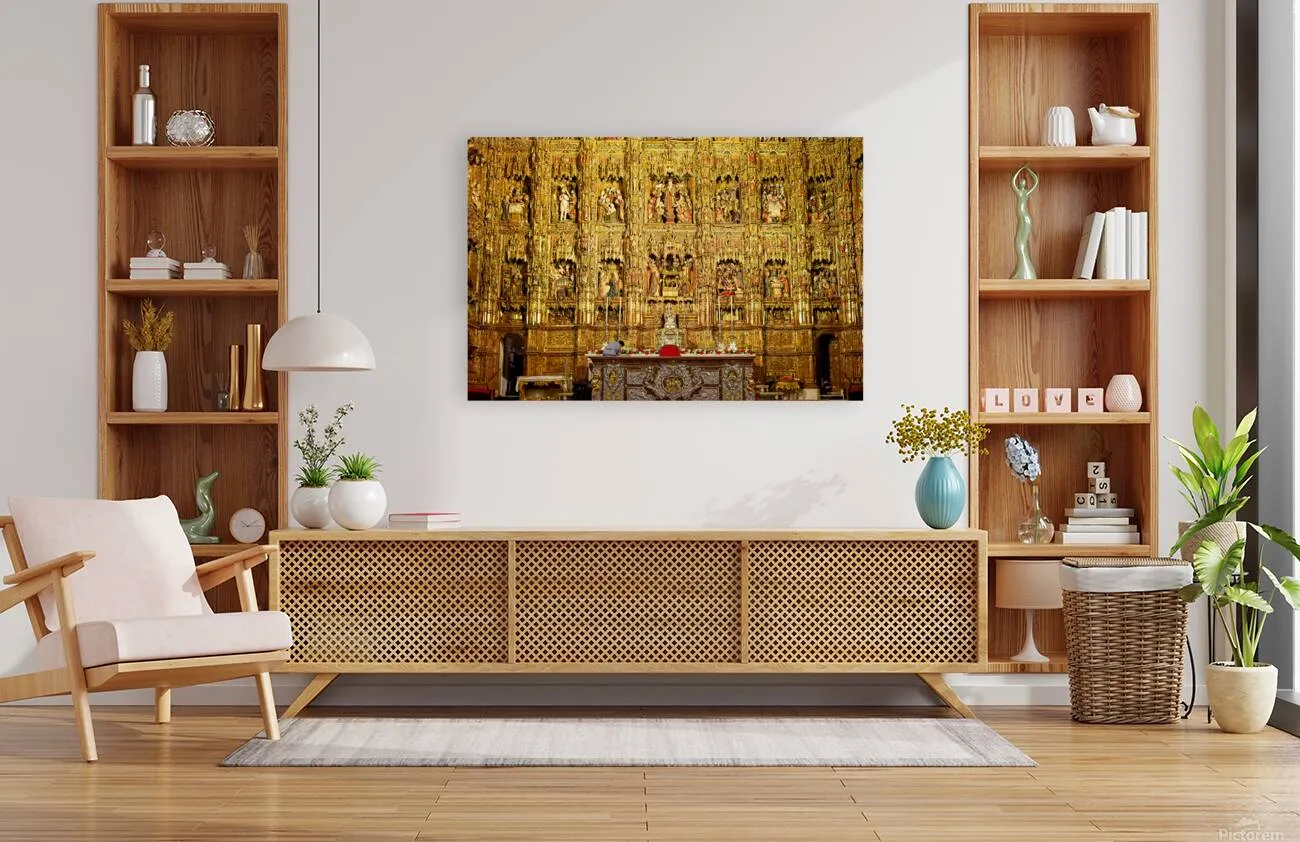 People explore La Giralda Cathedral in Seville Spain. The ornate altar has many details and reflects the history and culture of the area.