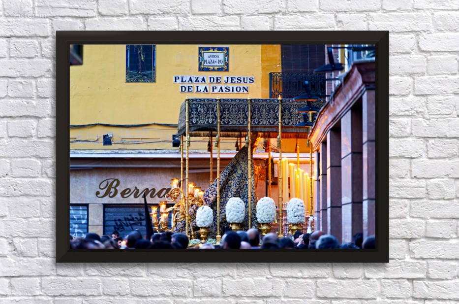 "Procession in Seville during Easter Holy Week" in a framed print.